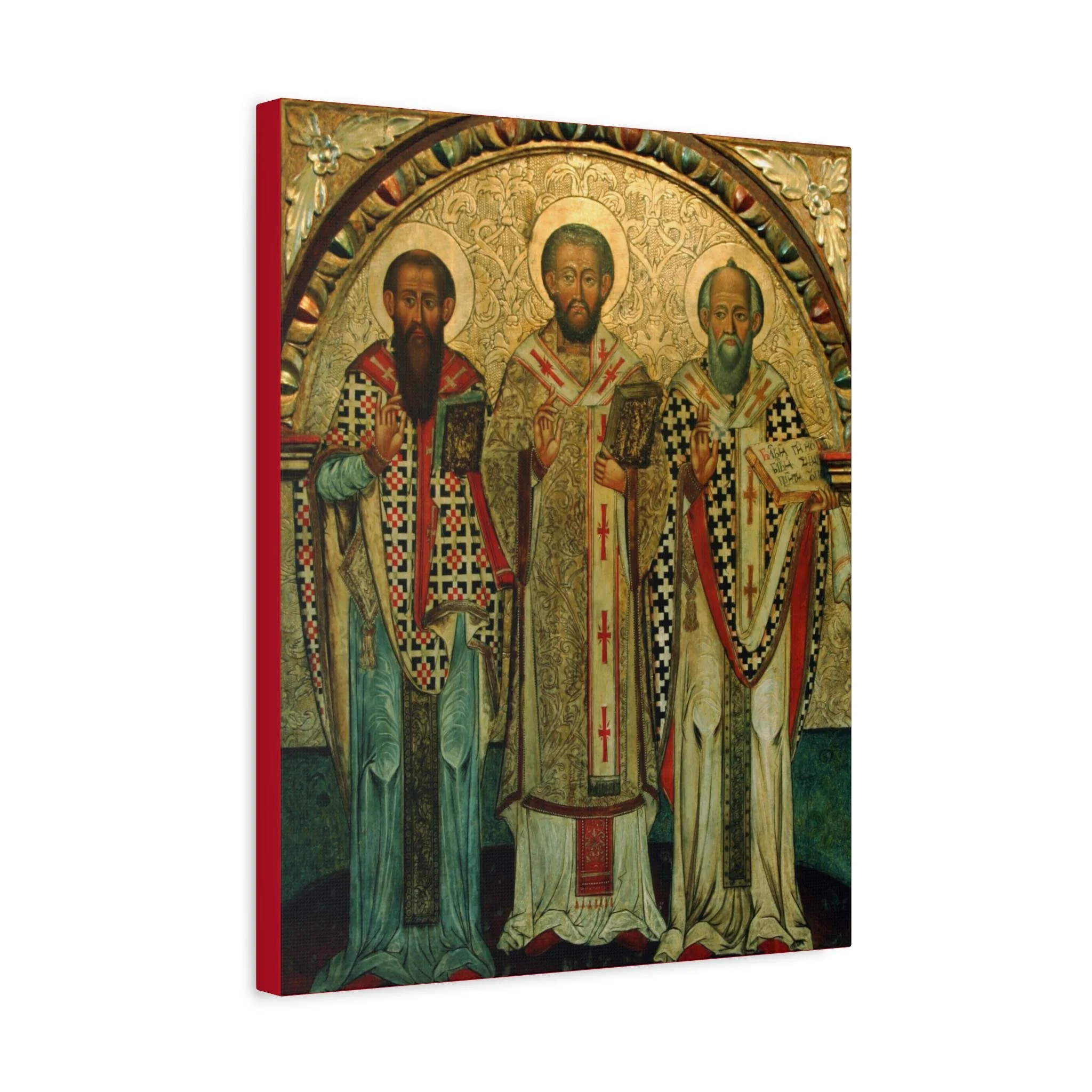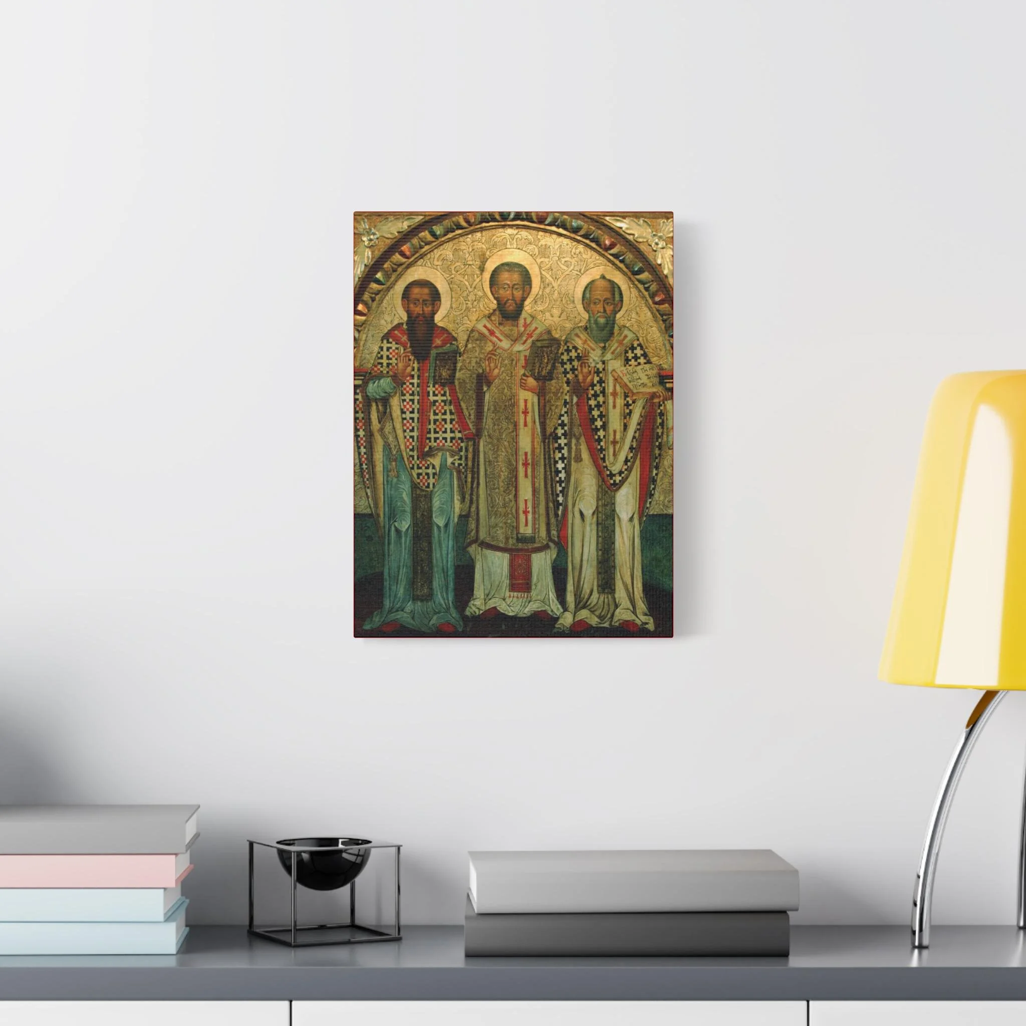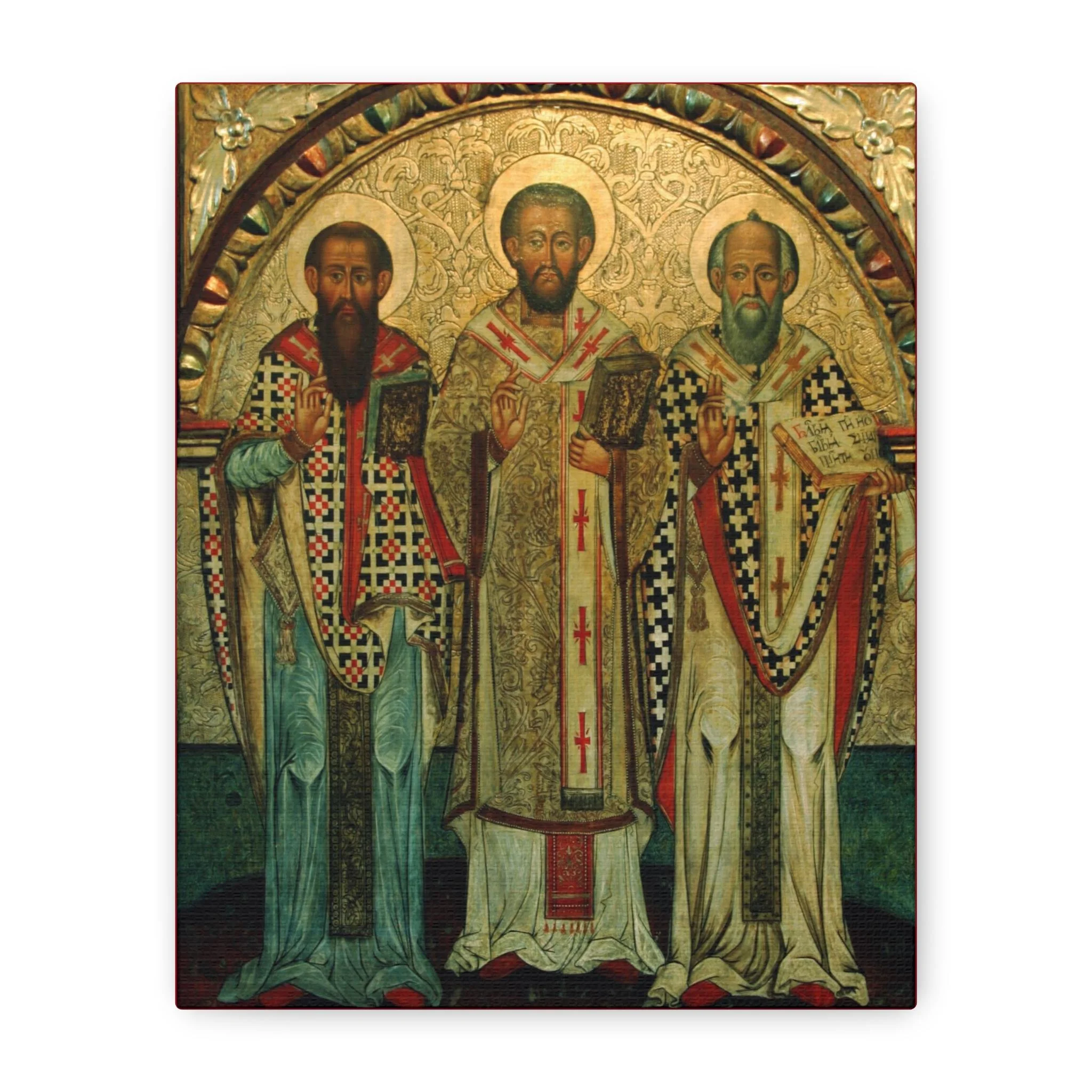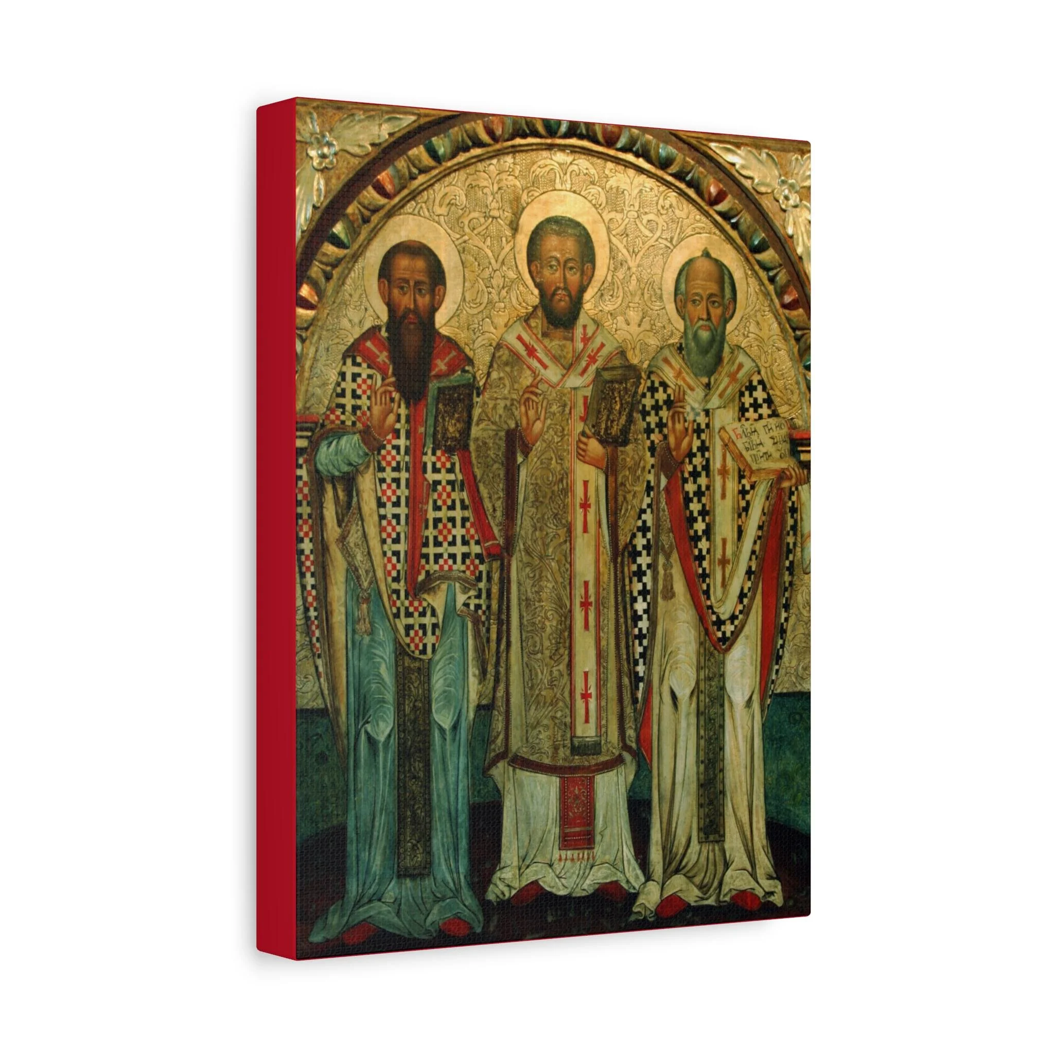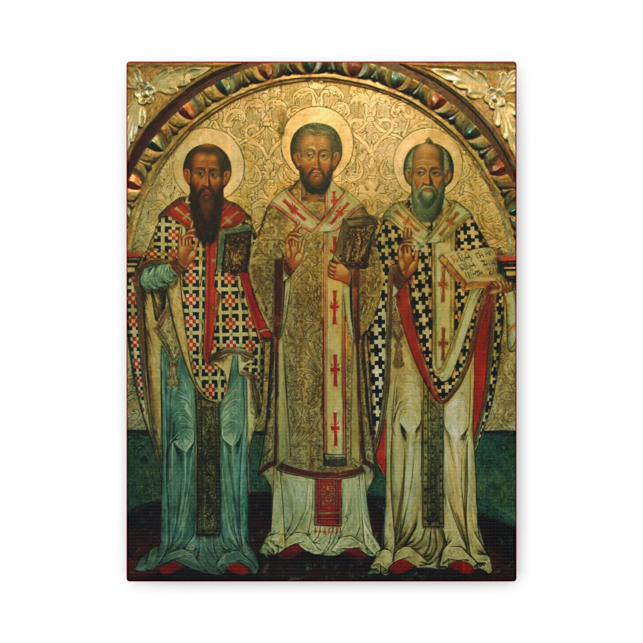 The aged texture, warm gilded tones, and expressive features echo the depth and mystery of the original medieval icon. This canvas preserves the contemplative character of ancient iconography while offering exceptional clarity and museum-quality printing. It creates a strong devotional focal point for prayer corners, home chapels, churches, or any space set apart for reflection.
