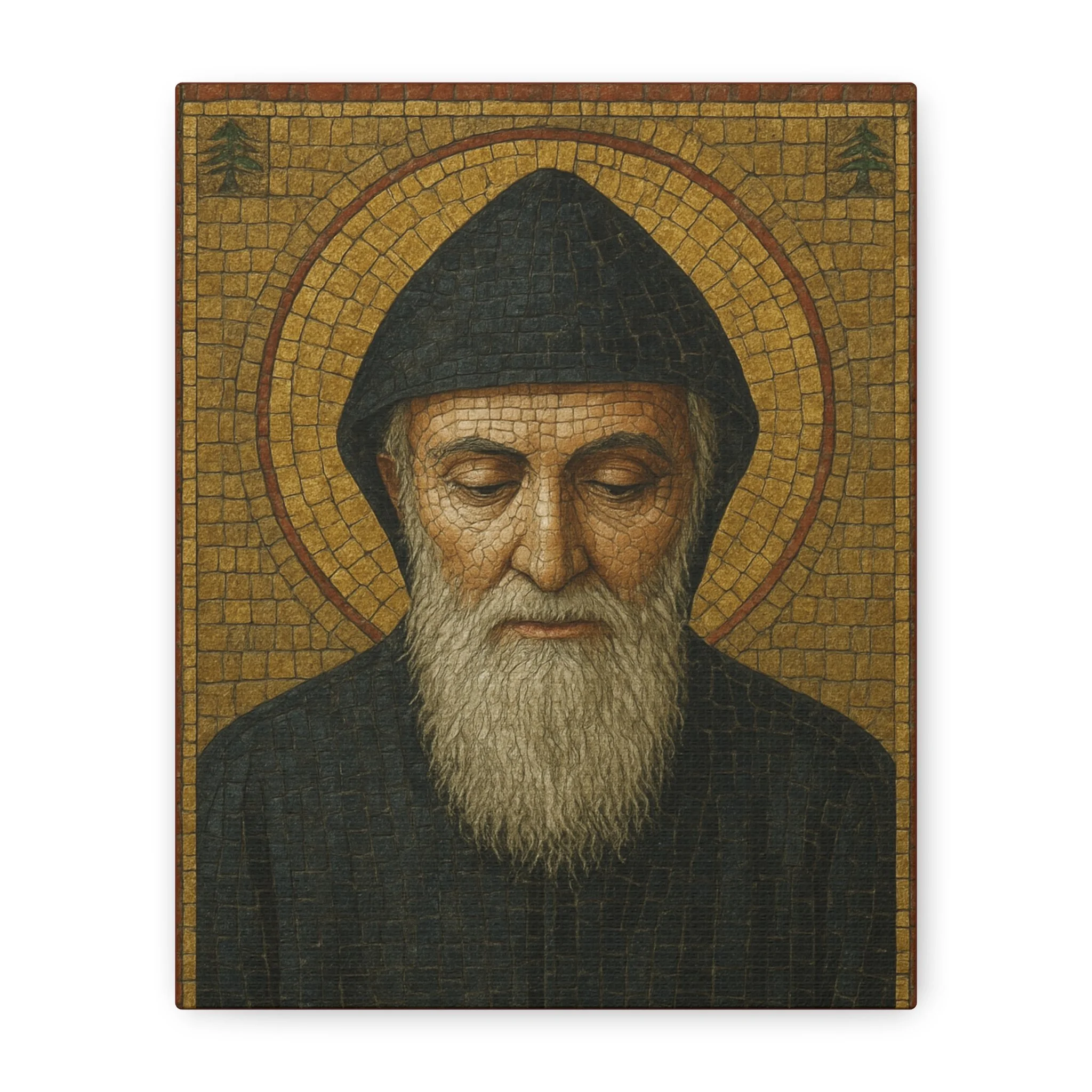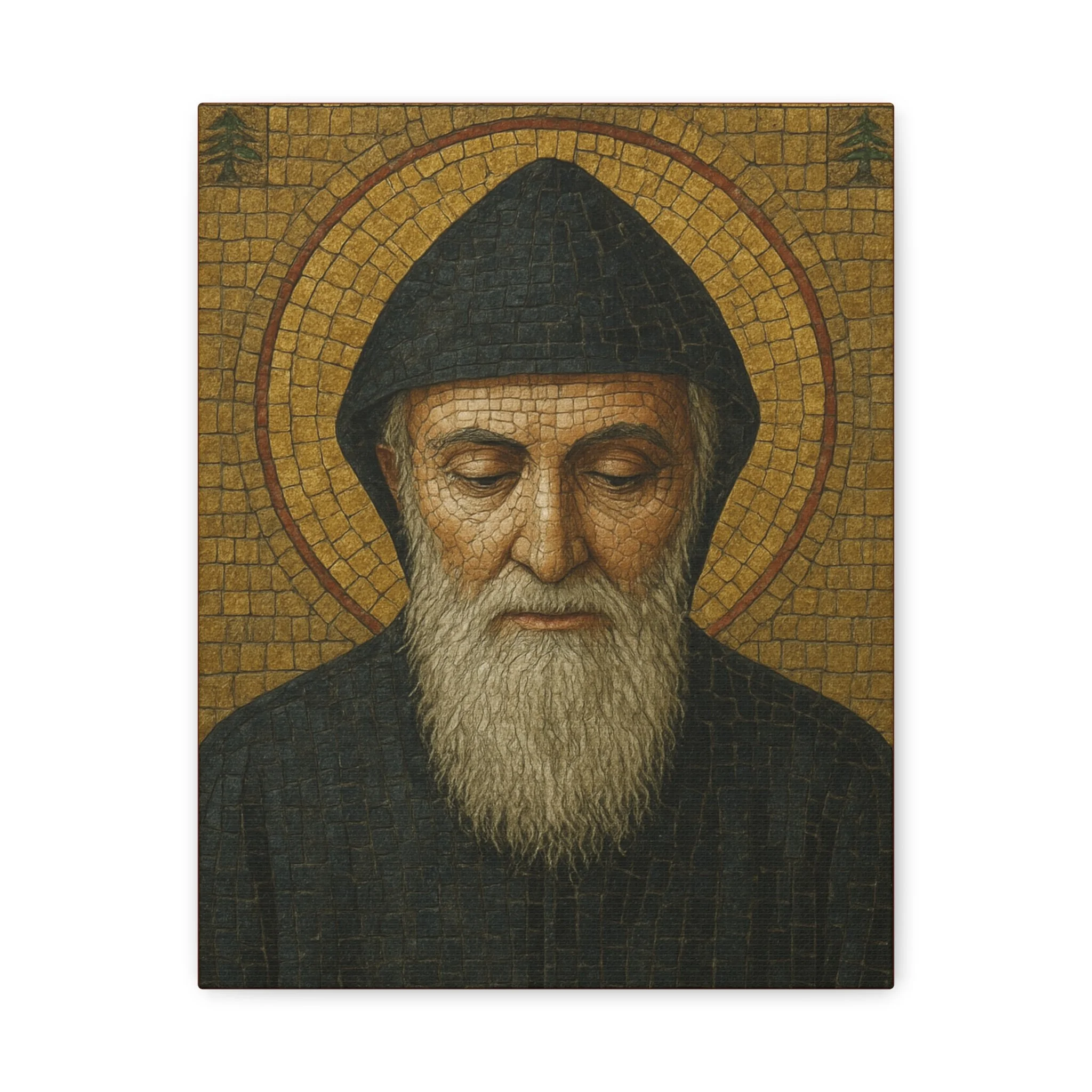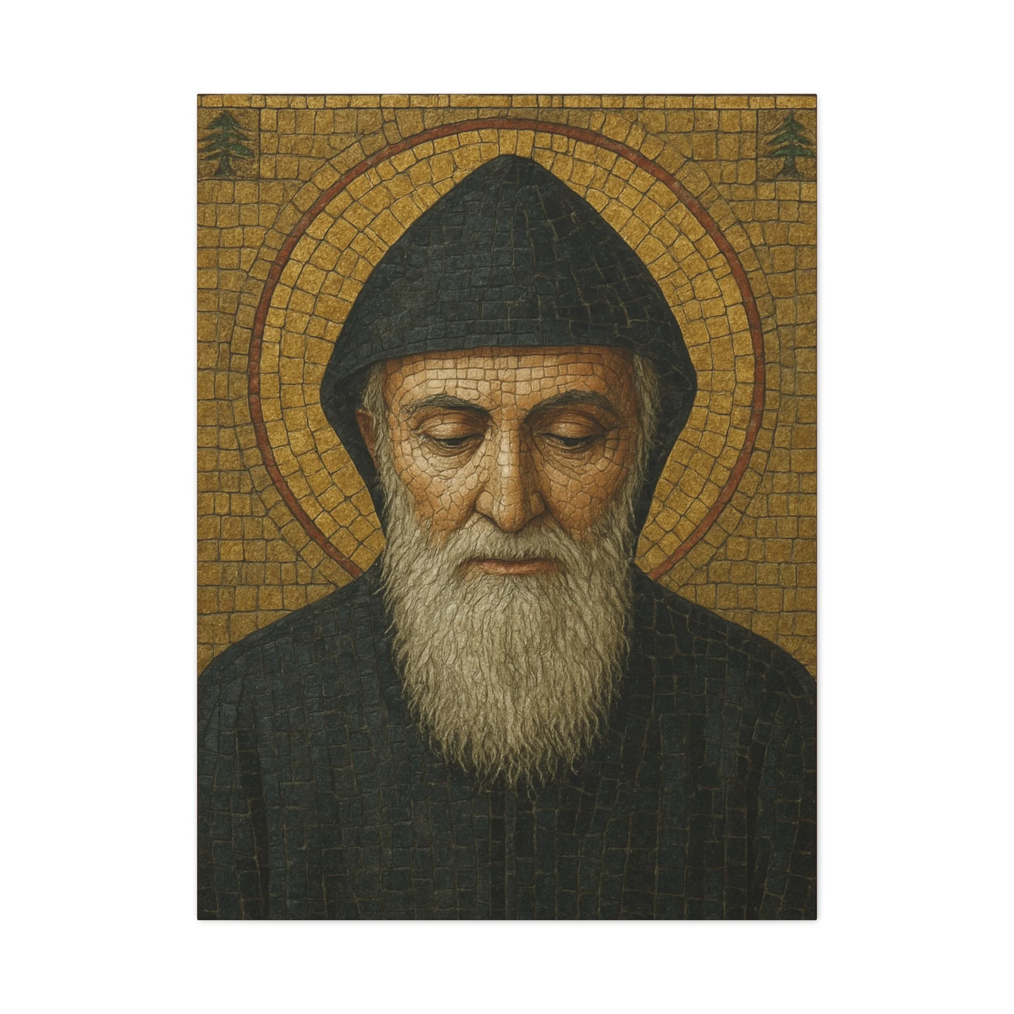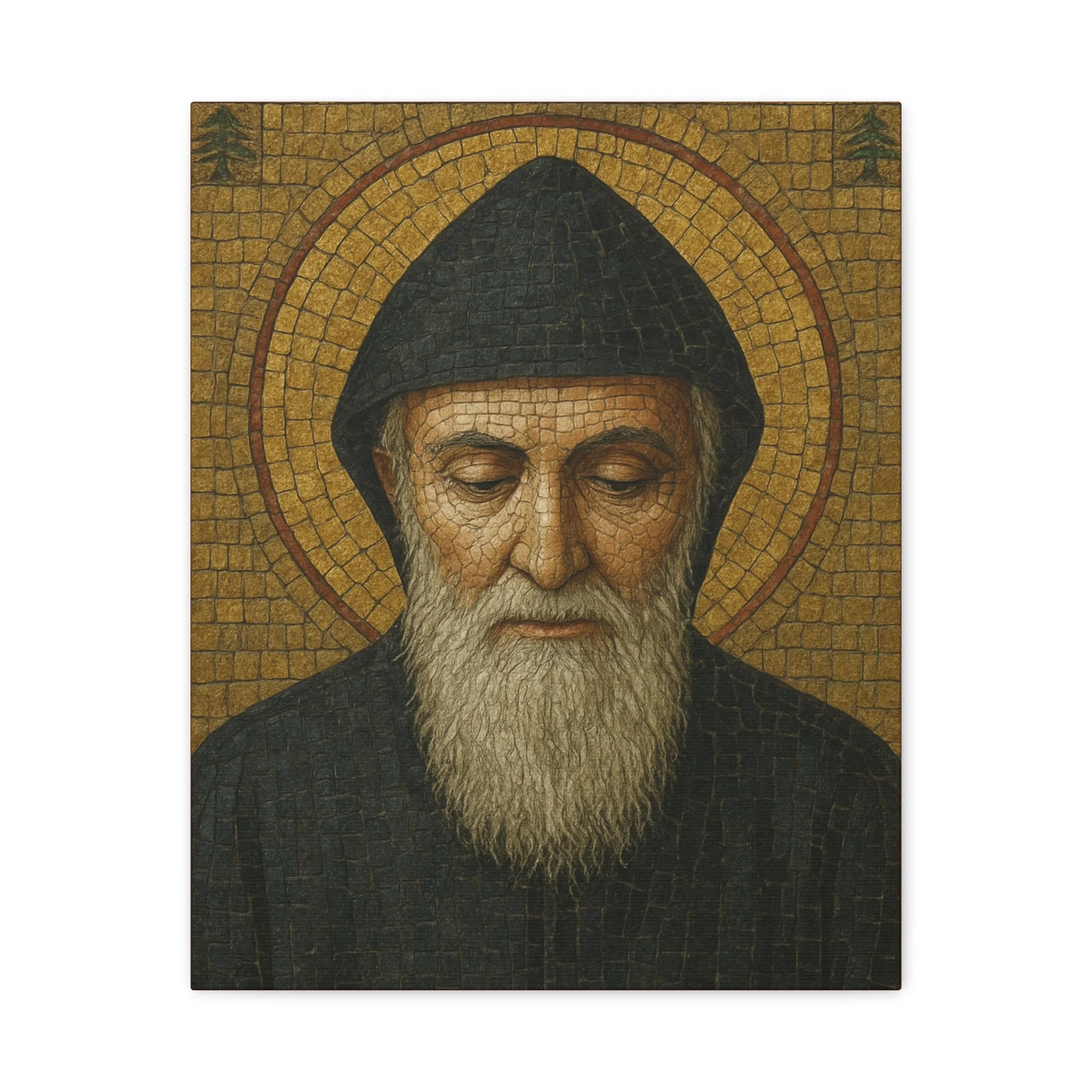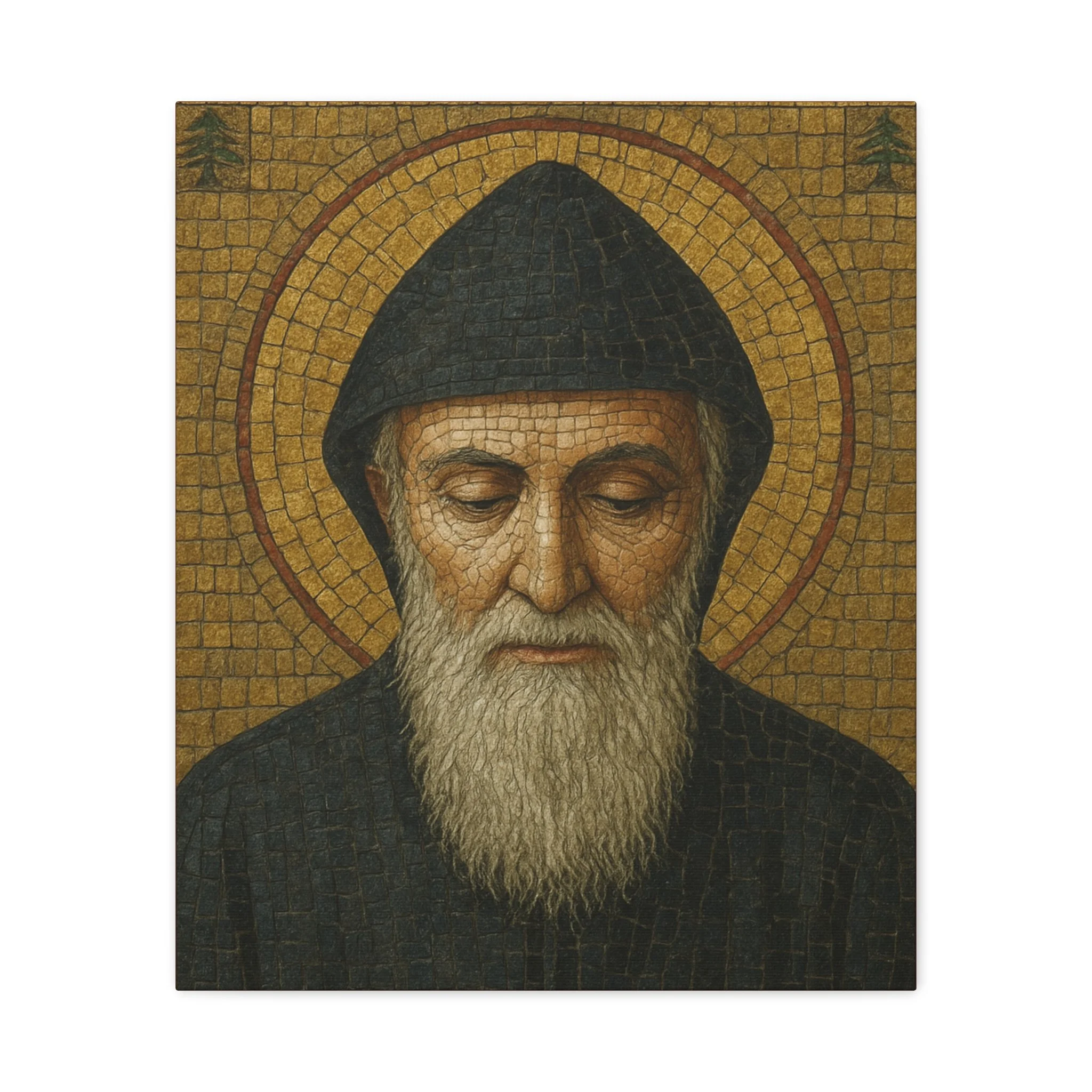 Saint Charbel Makhlouf Mosaic Icon Canvas | Maronite Catholic Wall Art | Lebanese Saint Decor | Christian Home Blessing | Prayer Room Gift