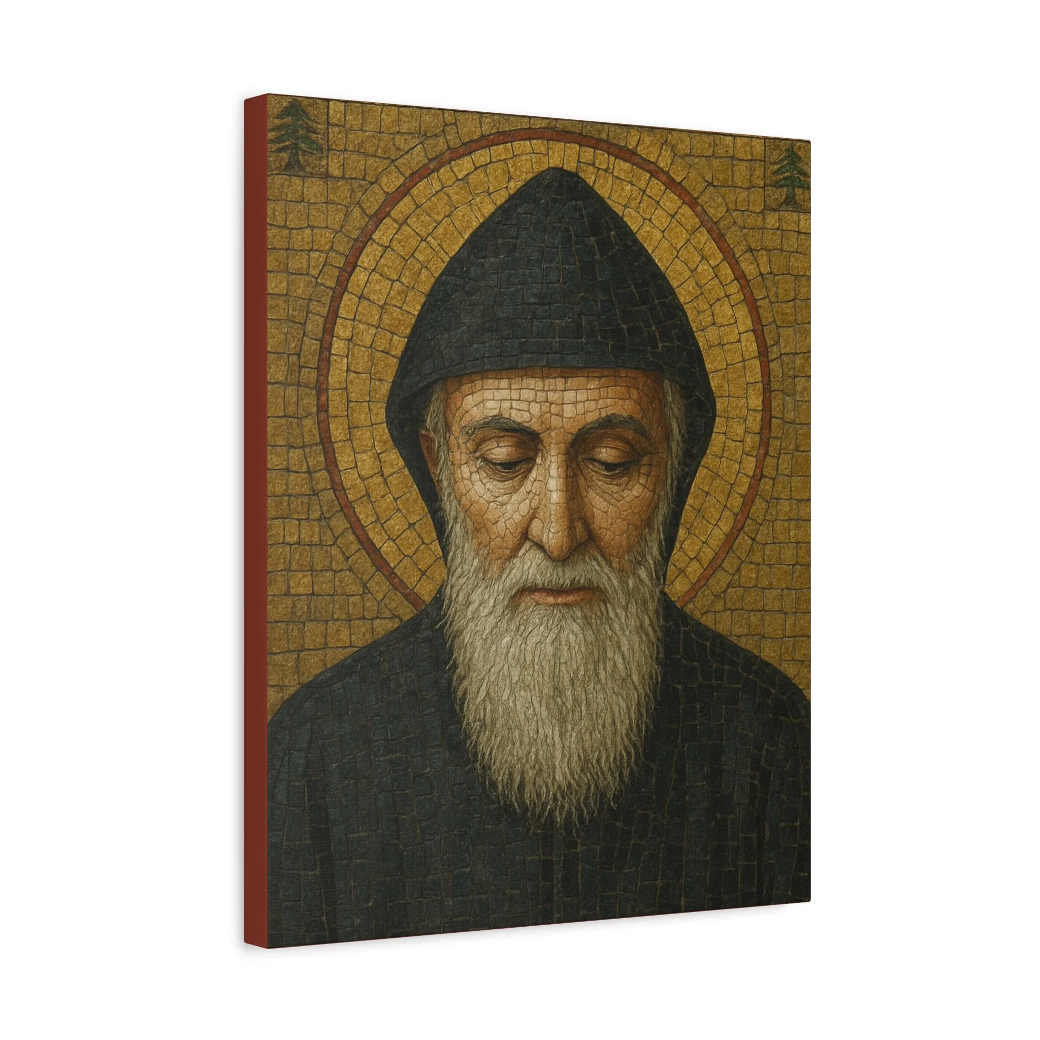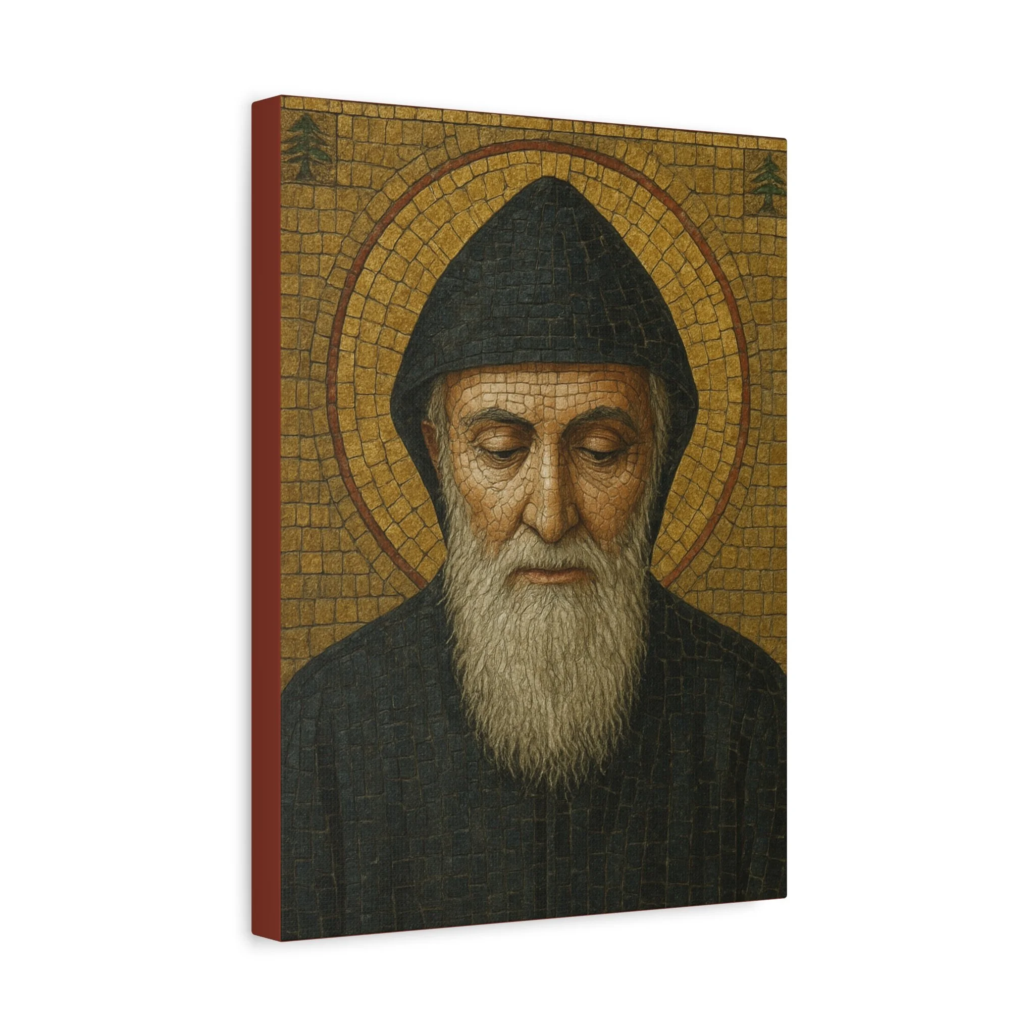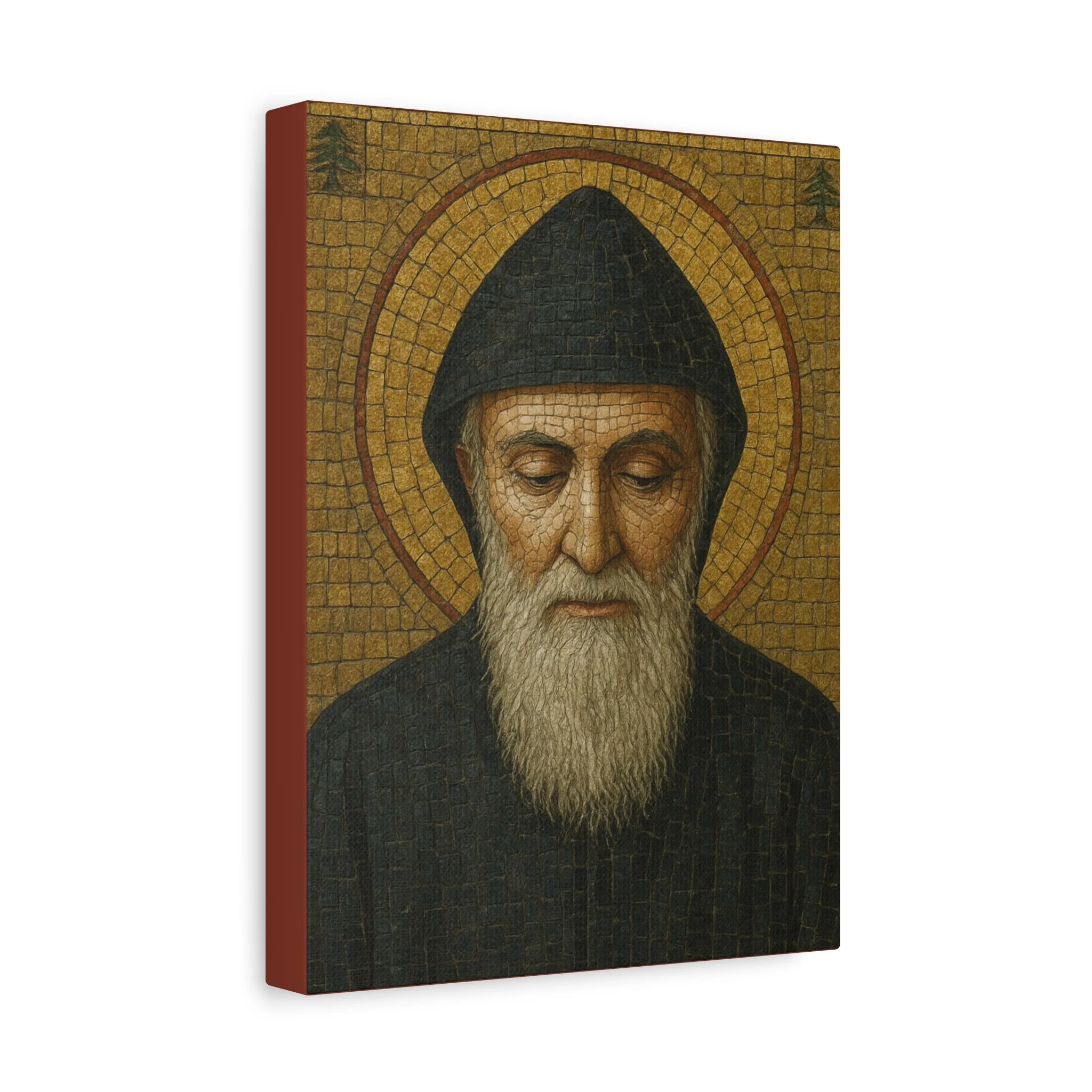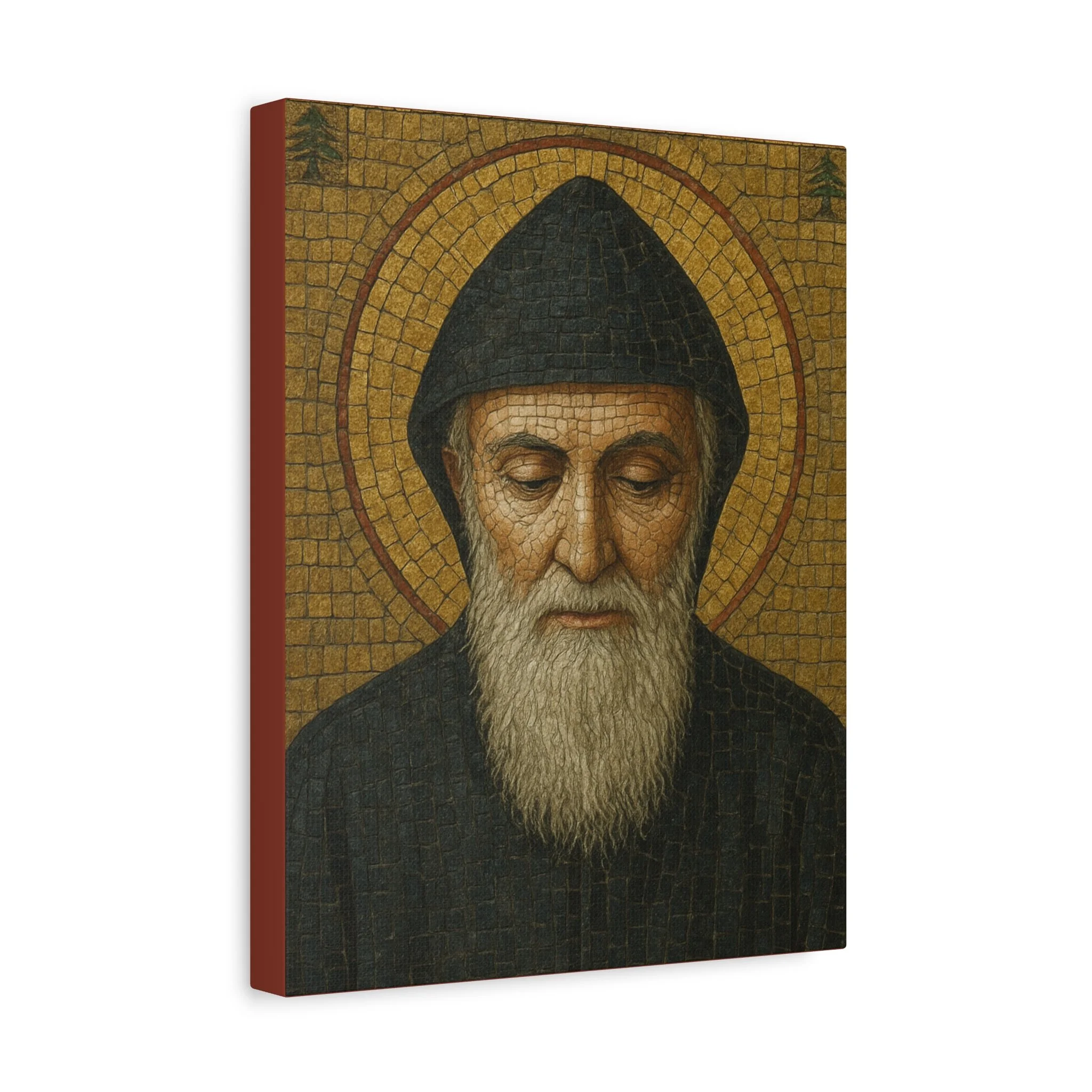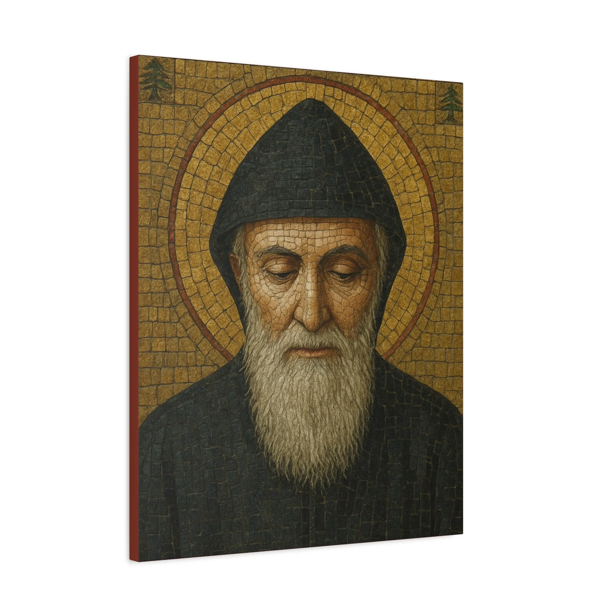 Saint Charbel Makhlouf Mosaic Icon Canvas | Maronite Catholic Wall Art | Lebanese Saint Decor | Christian Home Blessing | Prayer Room Gift