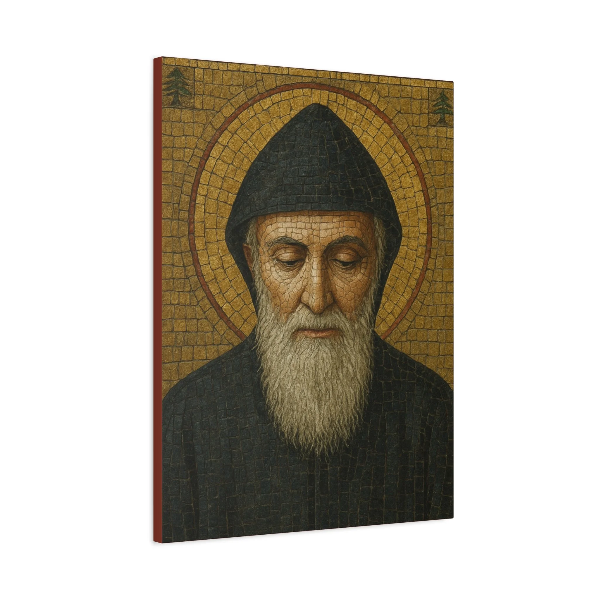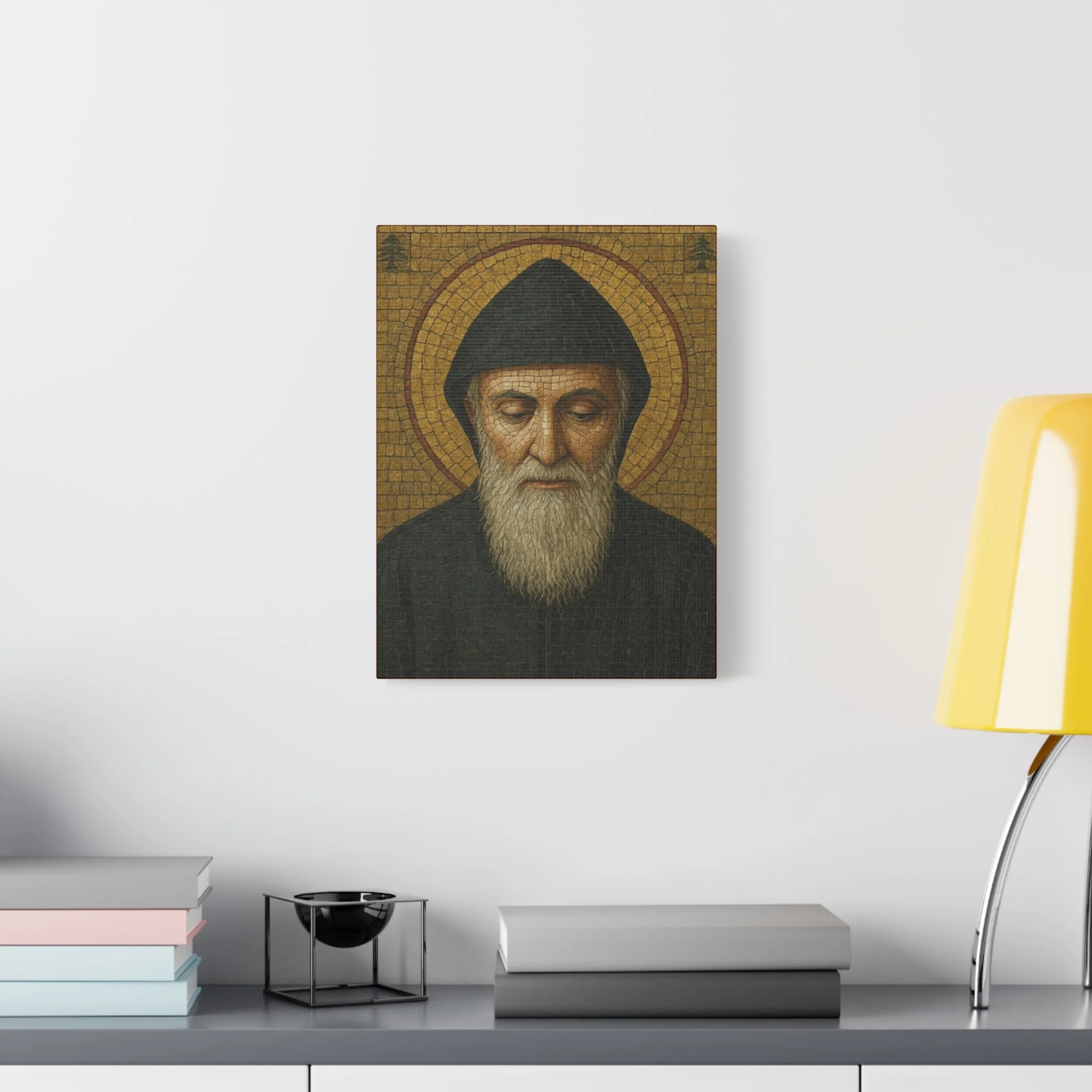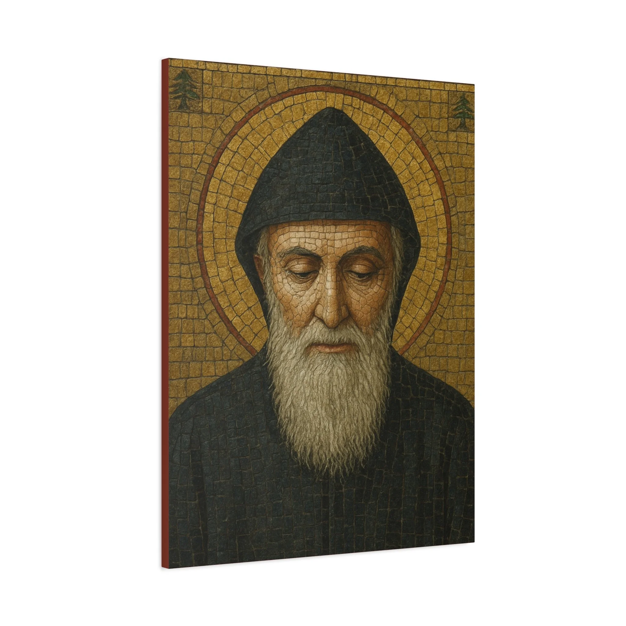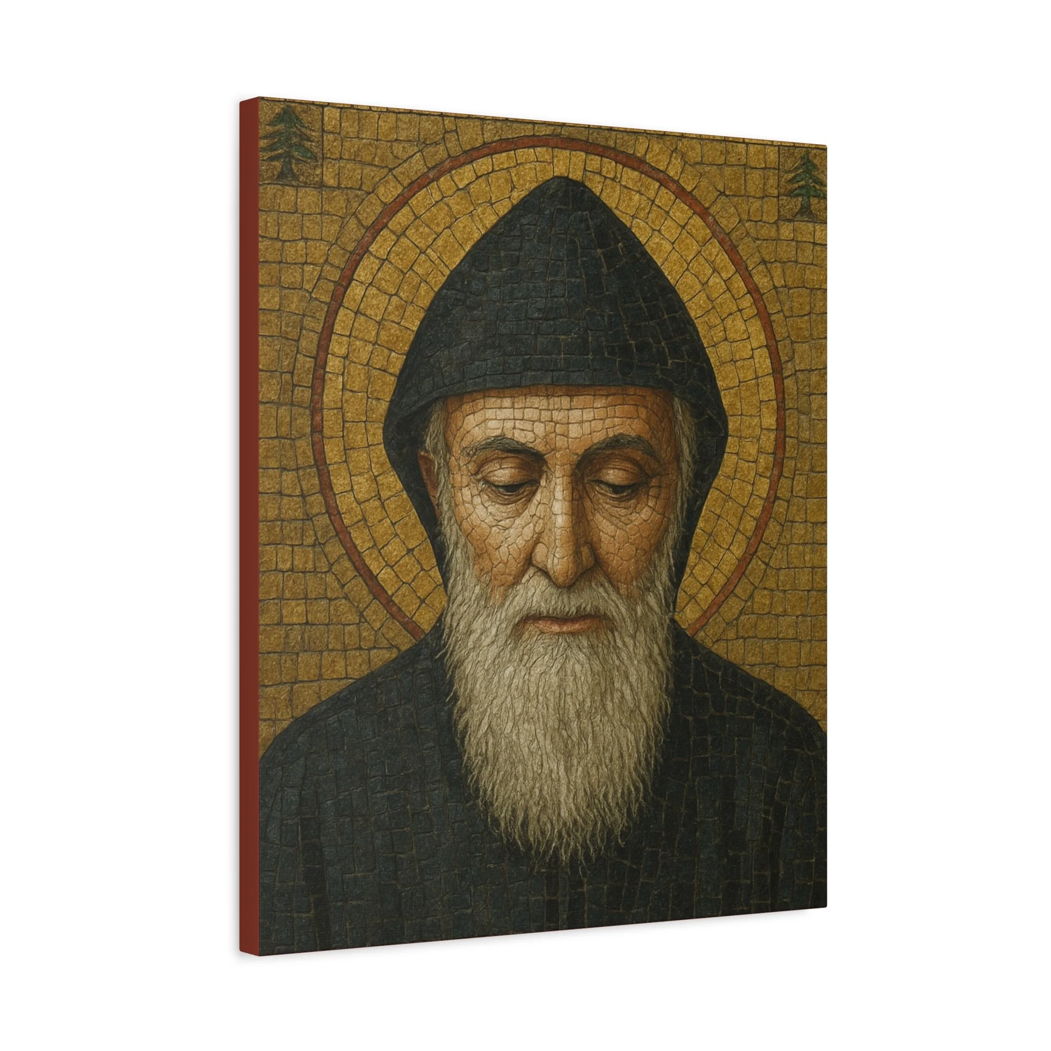 Saint Charbel Makhlouf Mosaic Icon Canvas | Maronite Catholic Wall Art | Lebanese Saint Decor | Christian Home Blessing | Prayer Room Gift