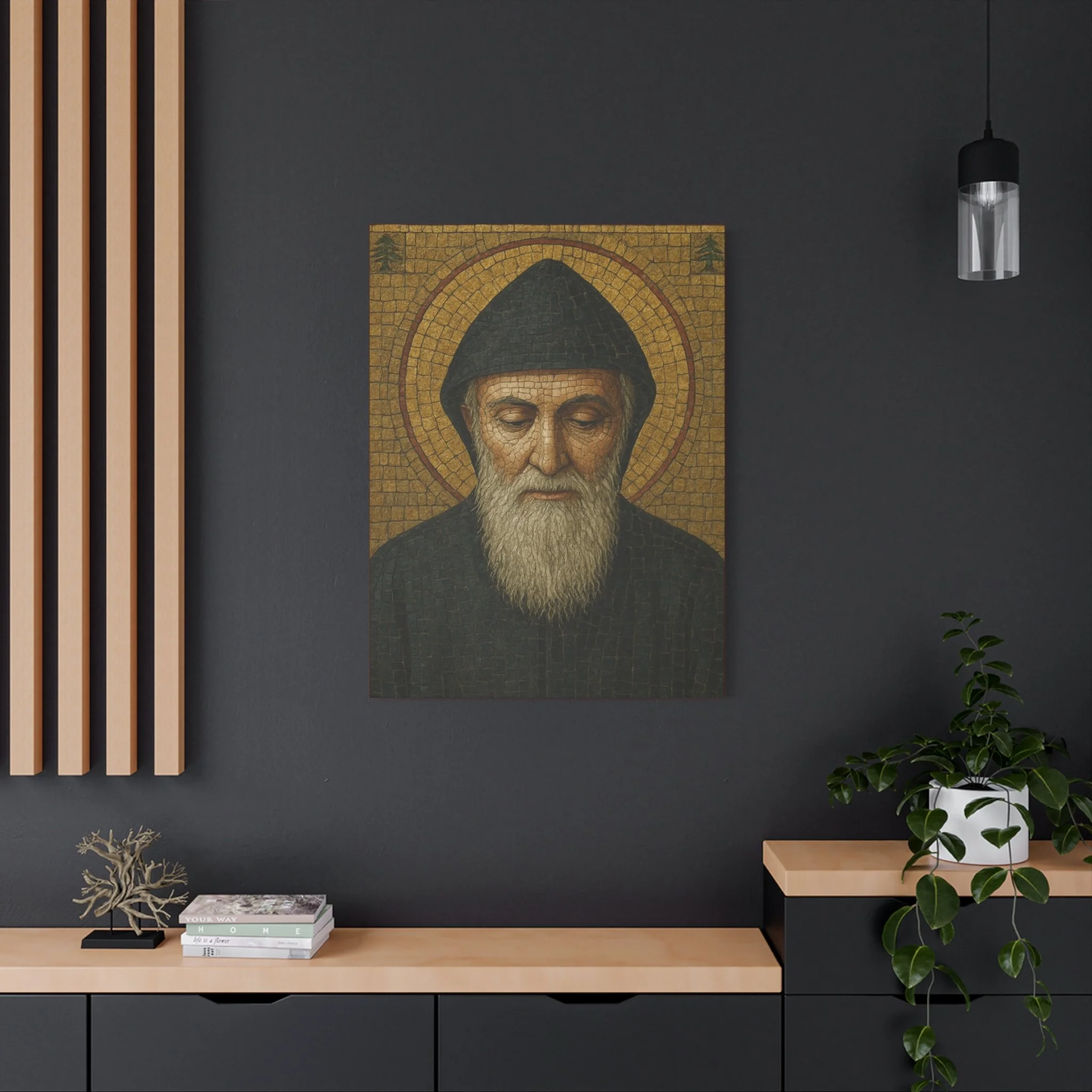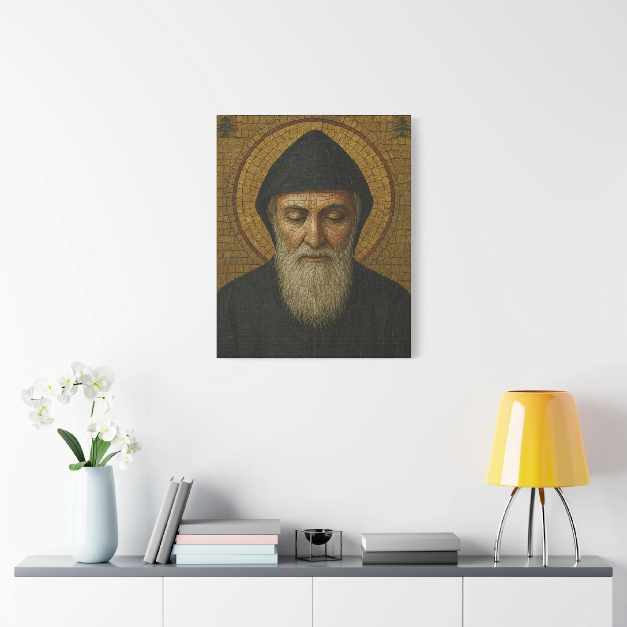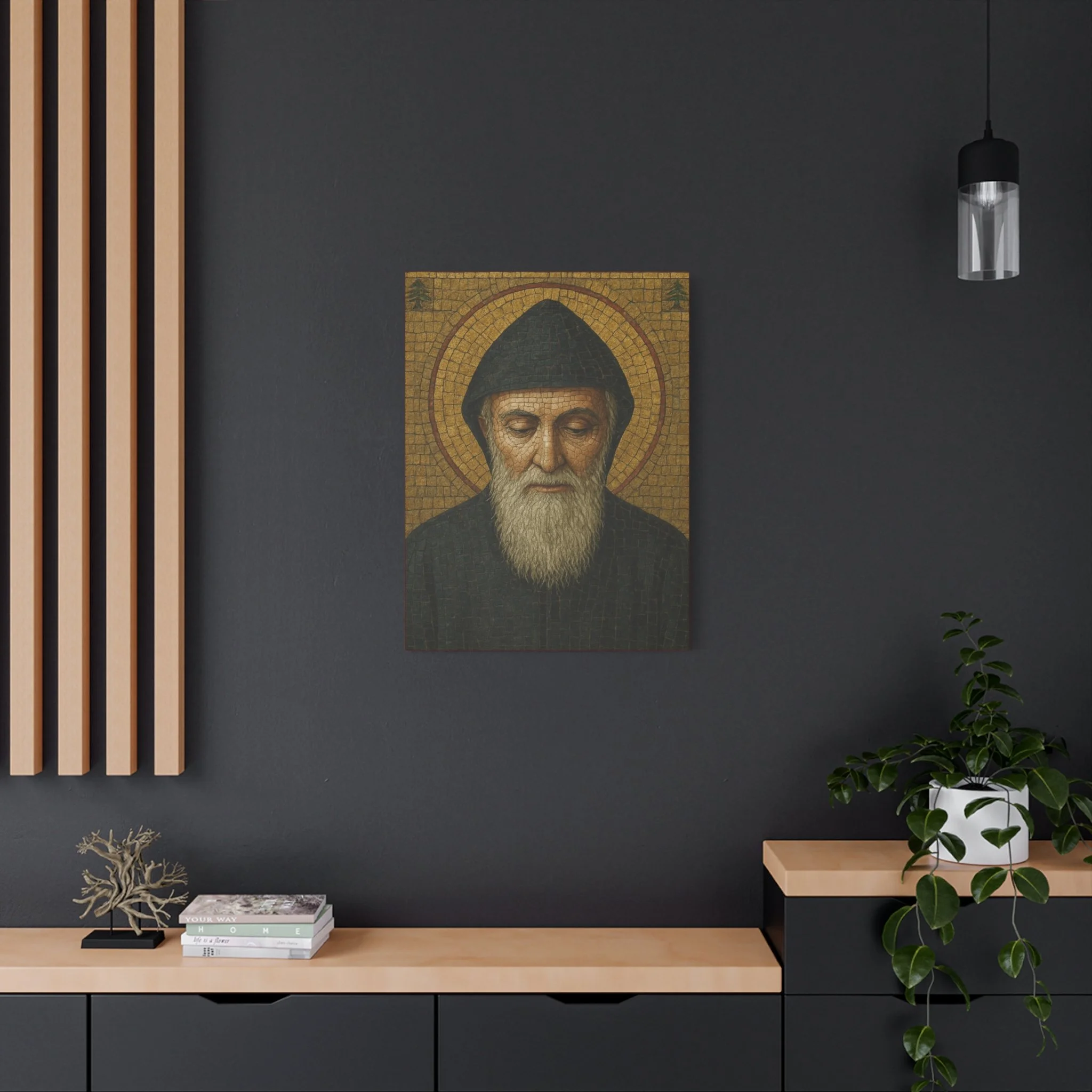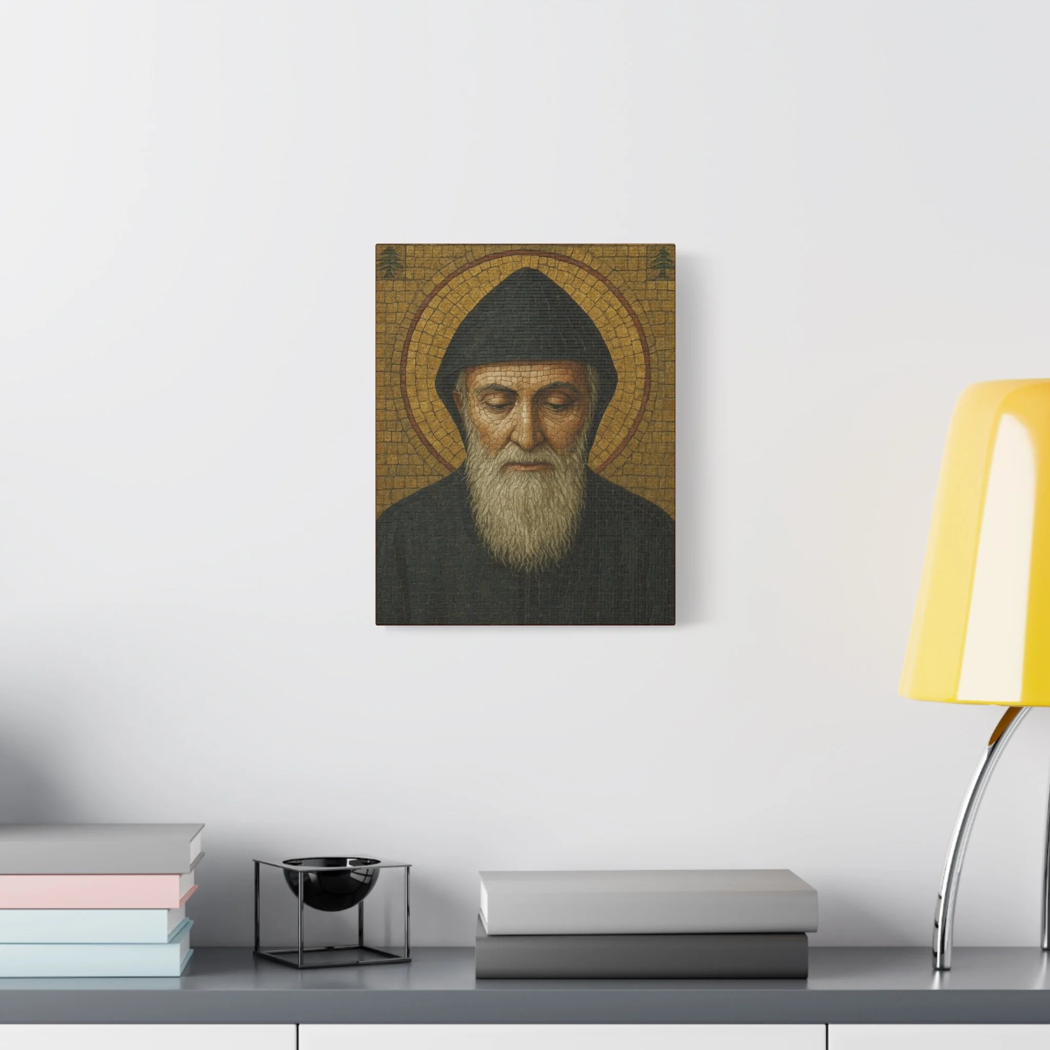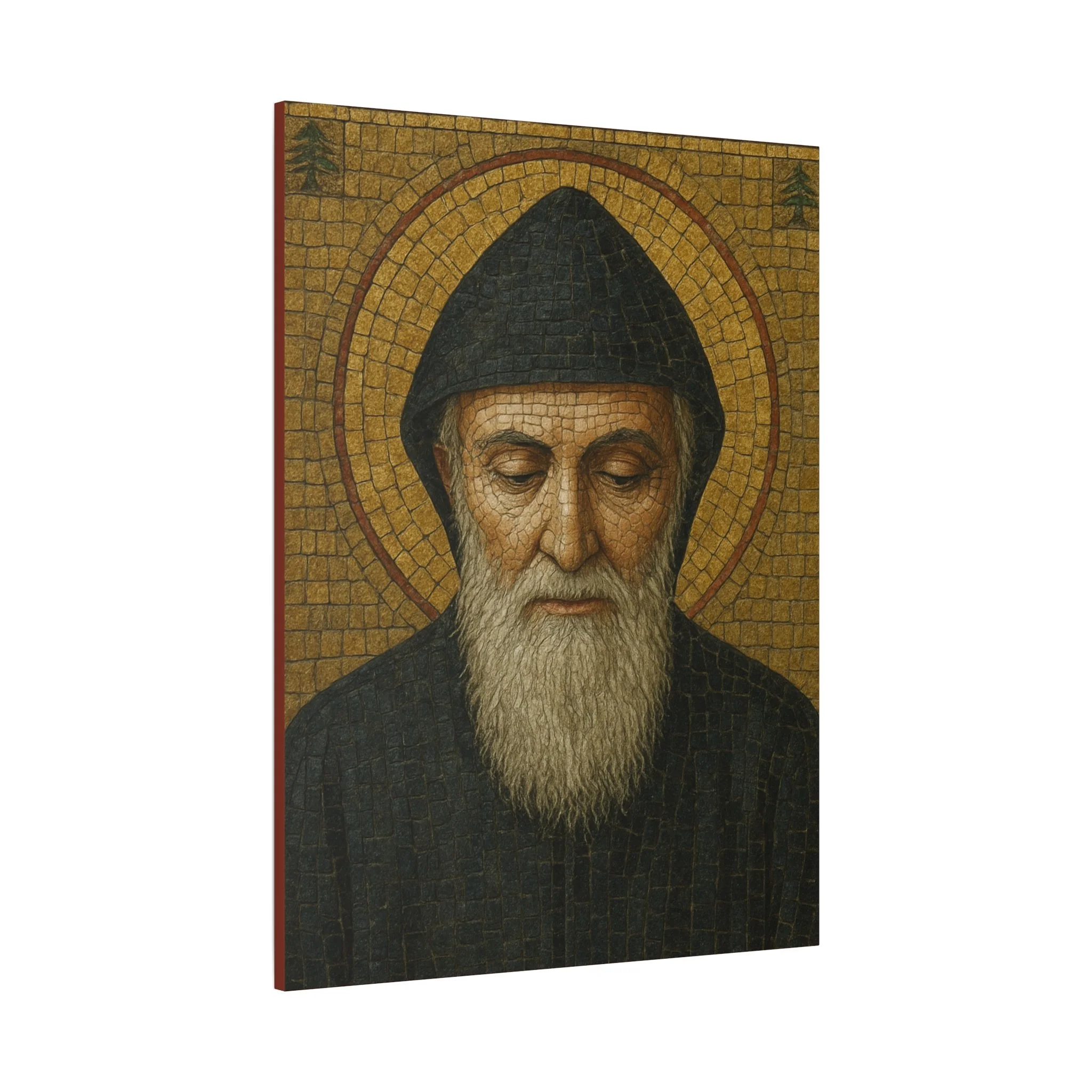 Saint Charbel Makhlouf Mosaic Icon Canvas | Maronite Catholic Wall Art | Lebanese Saint Decor | Christian Home Blessing | Prayer Room Gift