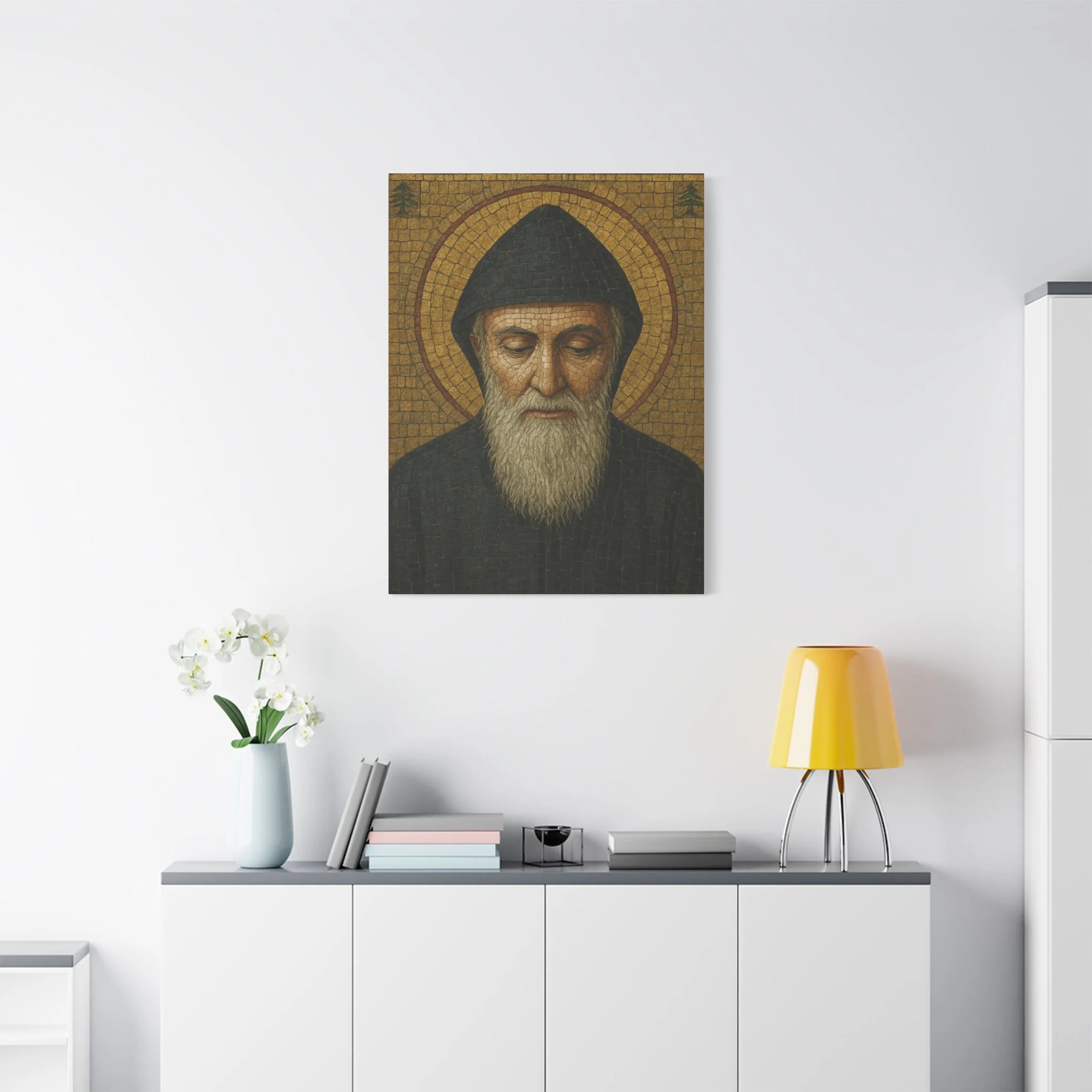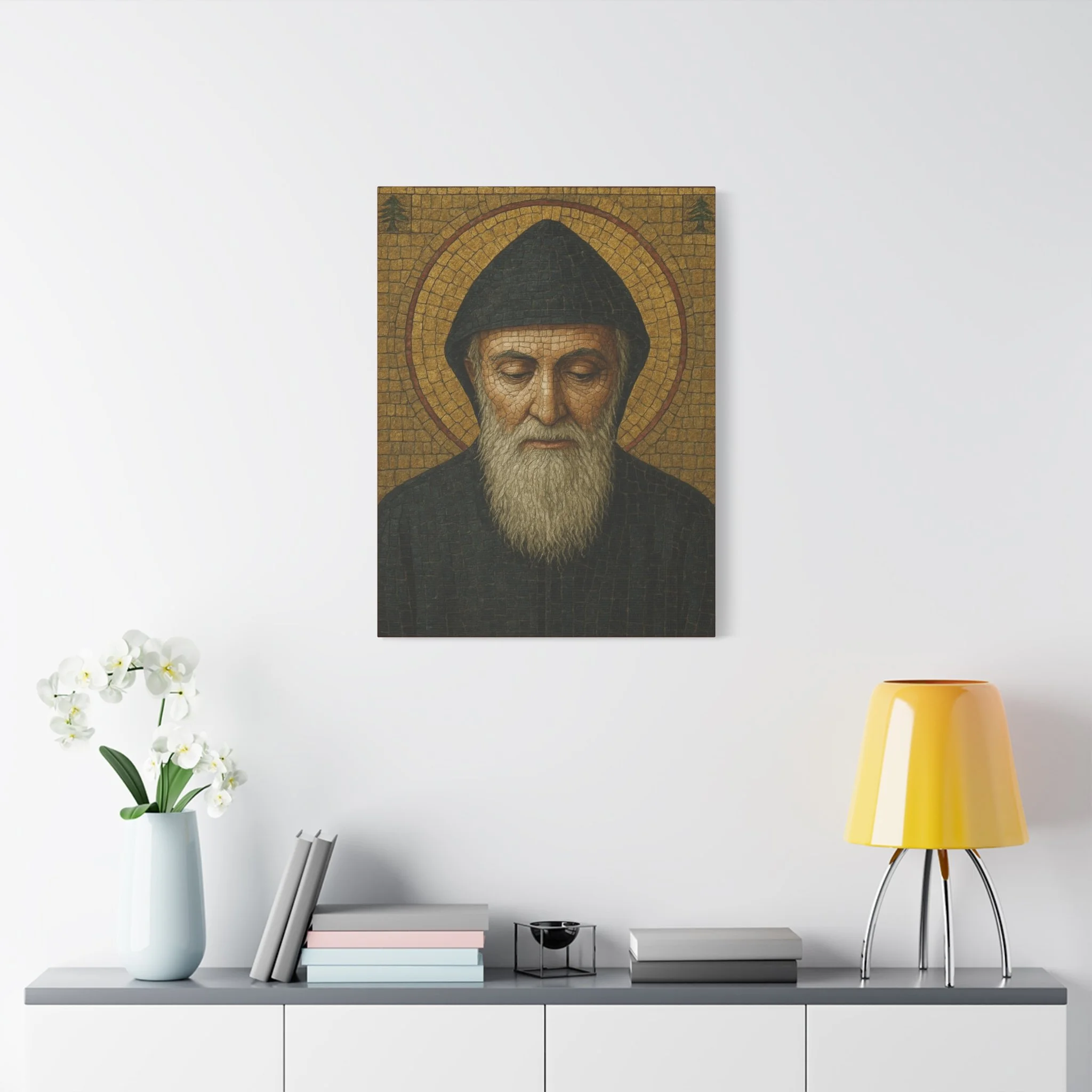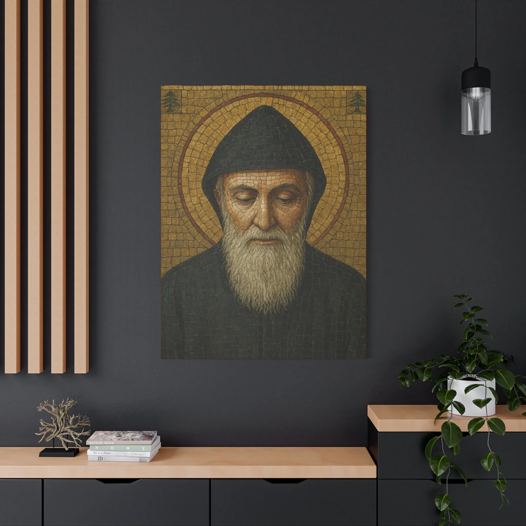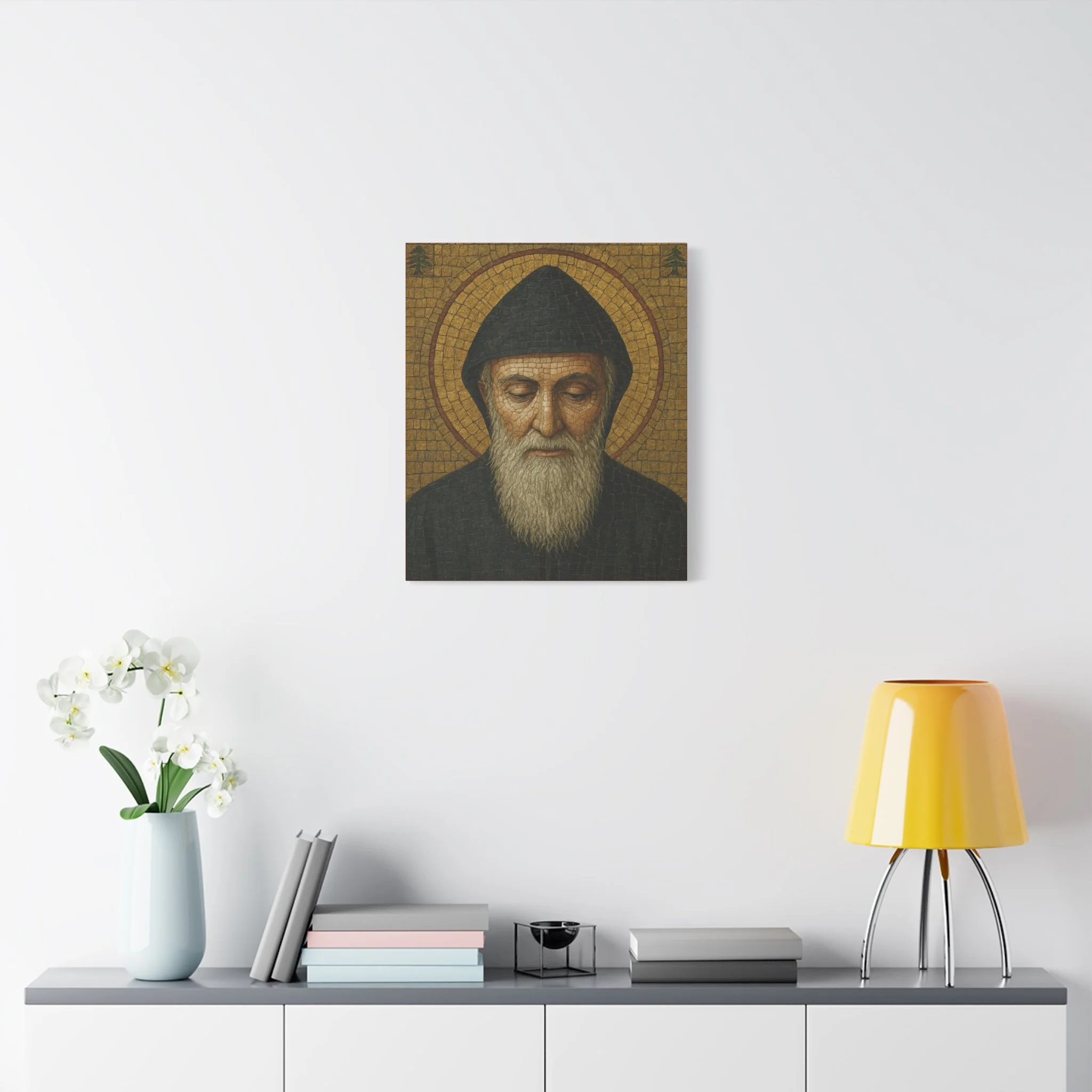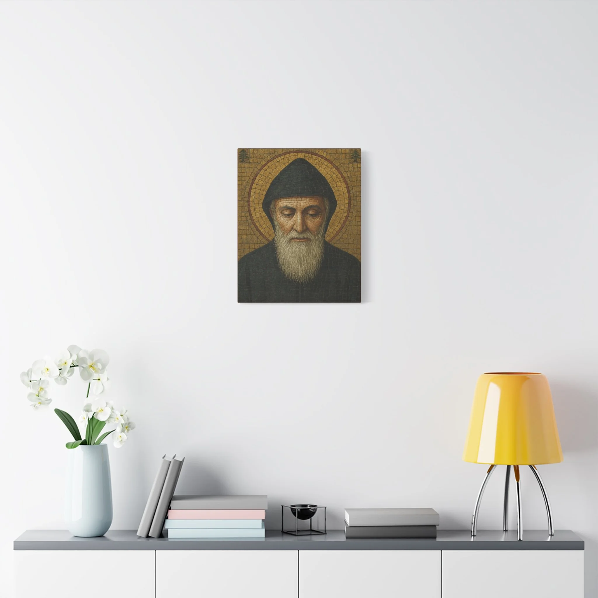 Saint Charbel Makhlouf Mosaic Icon Canvas | Maronite Catholic Wall Art | Lebanese Saint Decor | Christian Home Blessing | Prayer Room Gift
