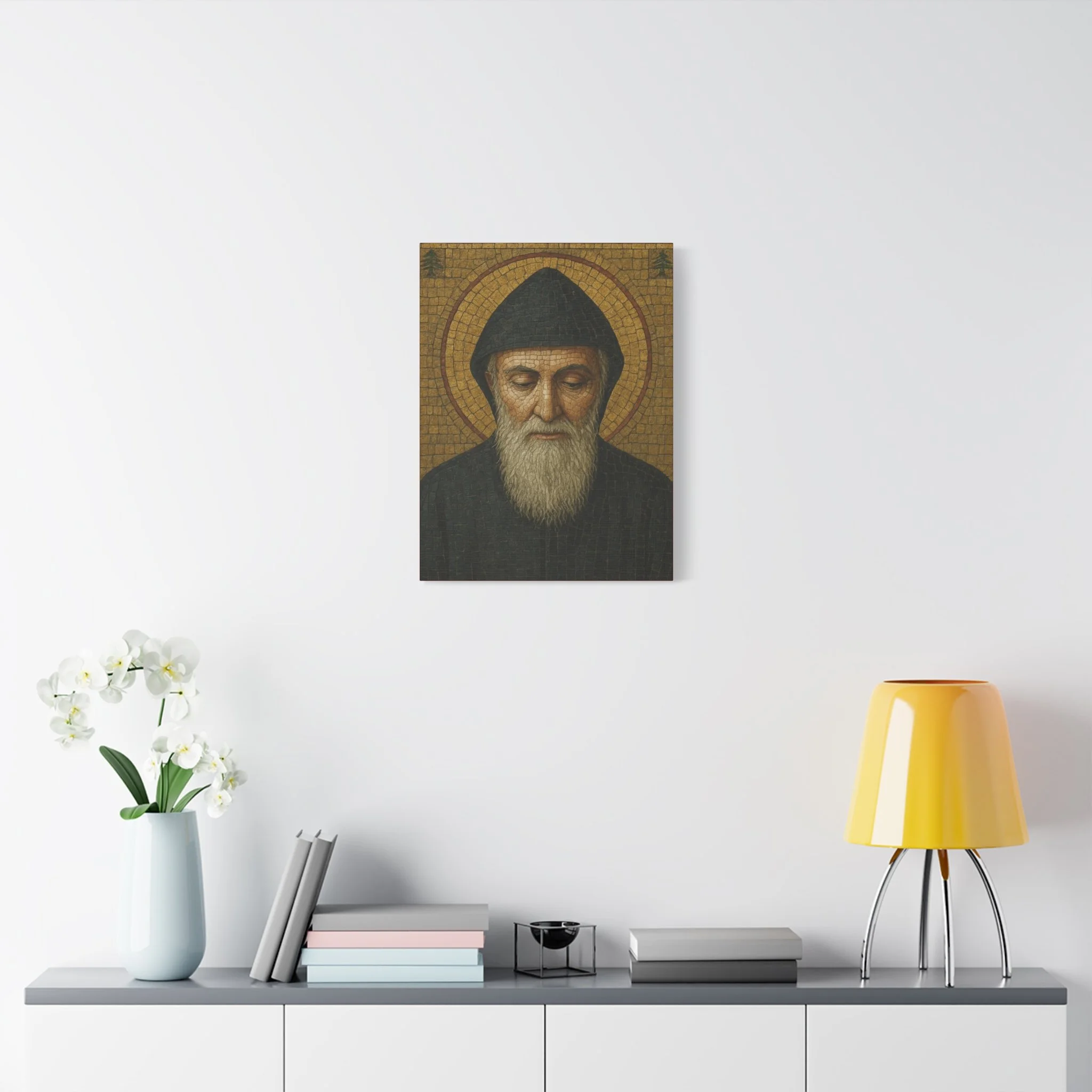 Printed on high-quality matte canvas and framed with durable FSC-certified wood, this piece retains the clarity and warmth of traditional iconography while offering the convenience and longevity of modern craftsmanship. It is ideal for home altars, prayer corners, living rooms, offices, and chapels, or as a meaningful gift for anyone devoted to this beloved Lebanese saint.