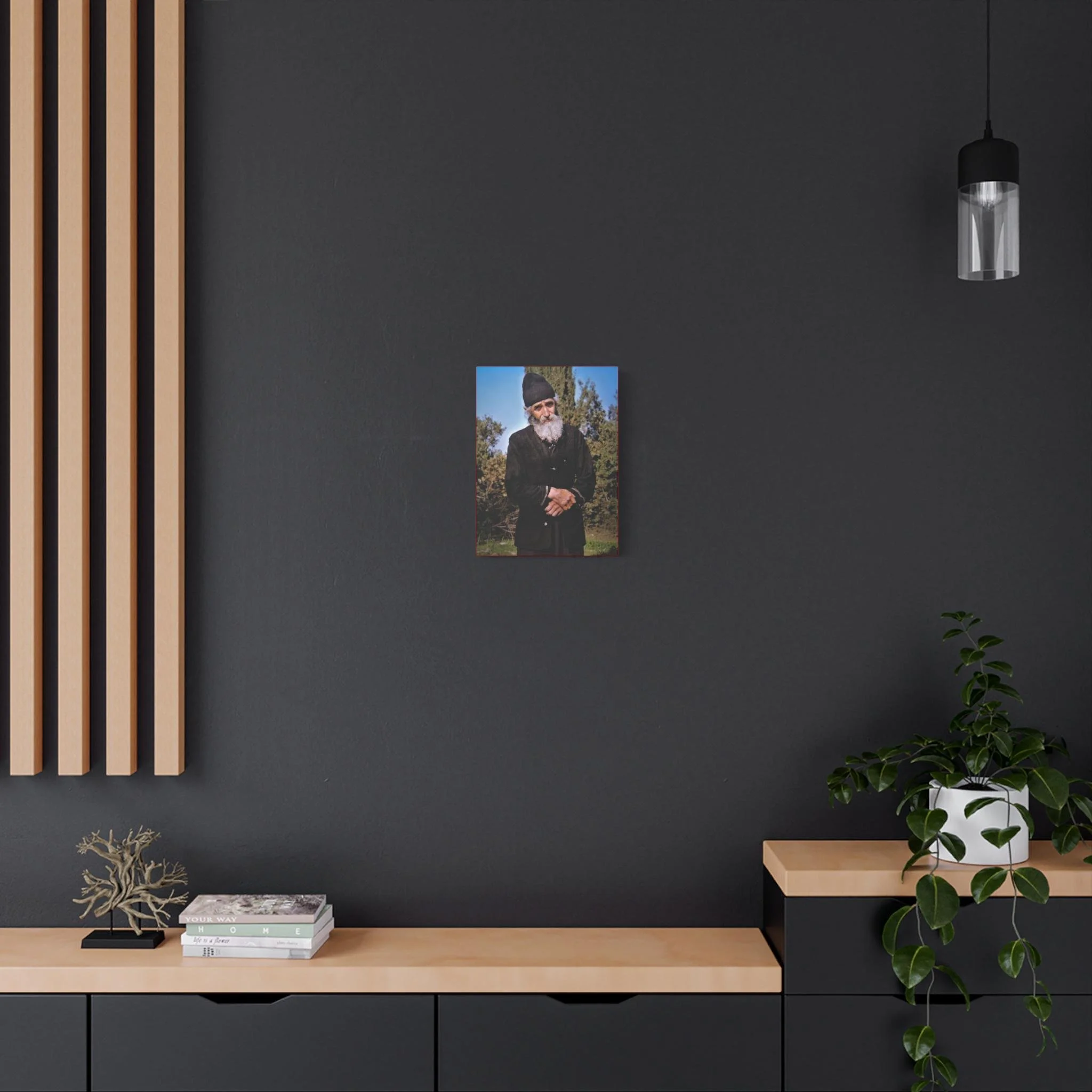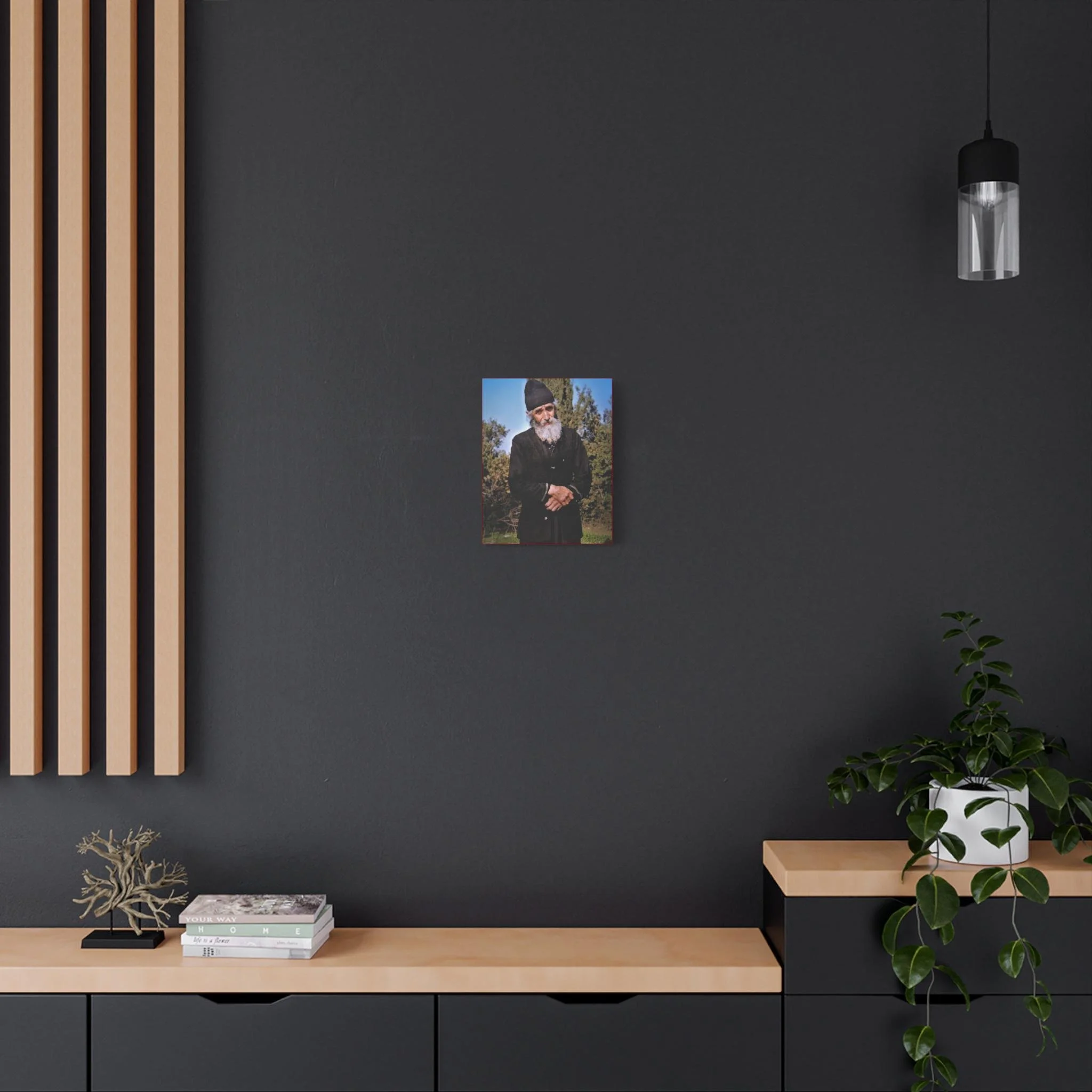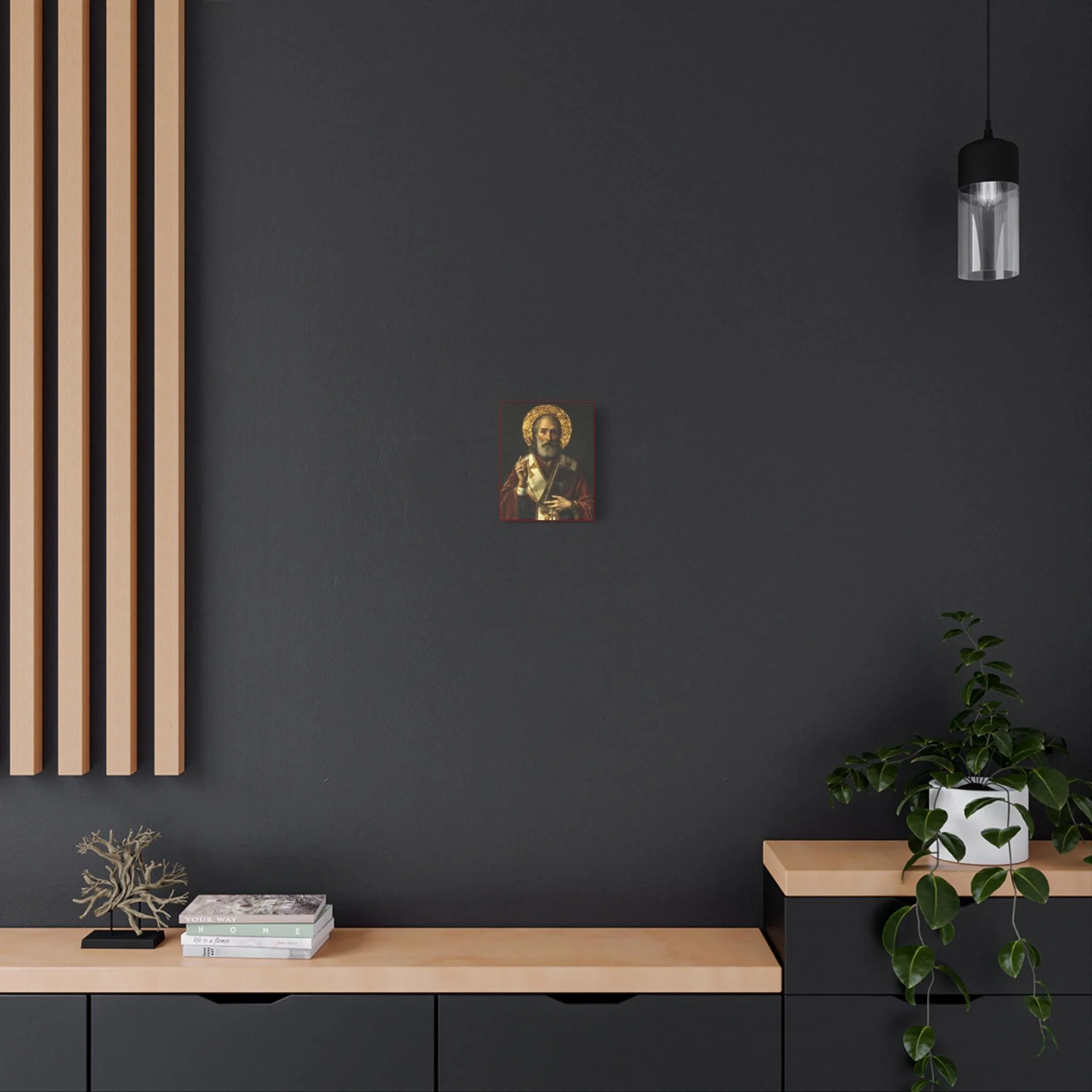 This sacred canvas brings his peaceful presence into your home as a reminder of hope, endurance, and divine healing.