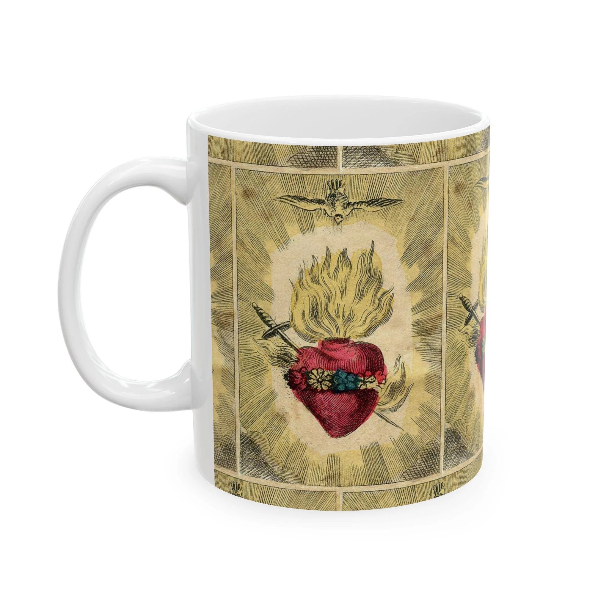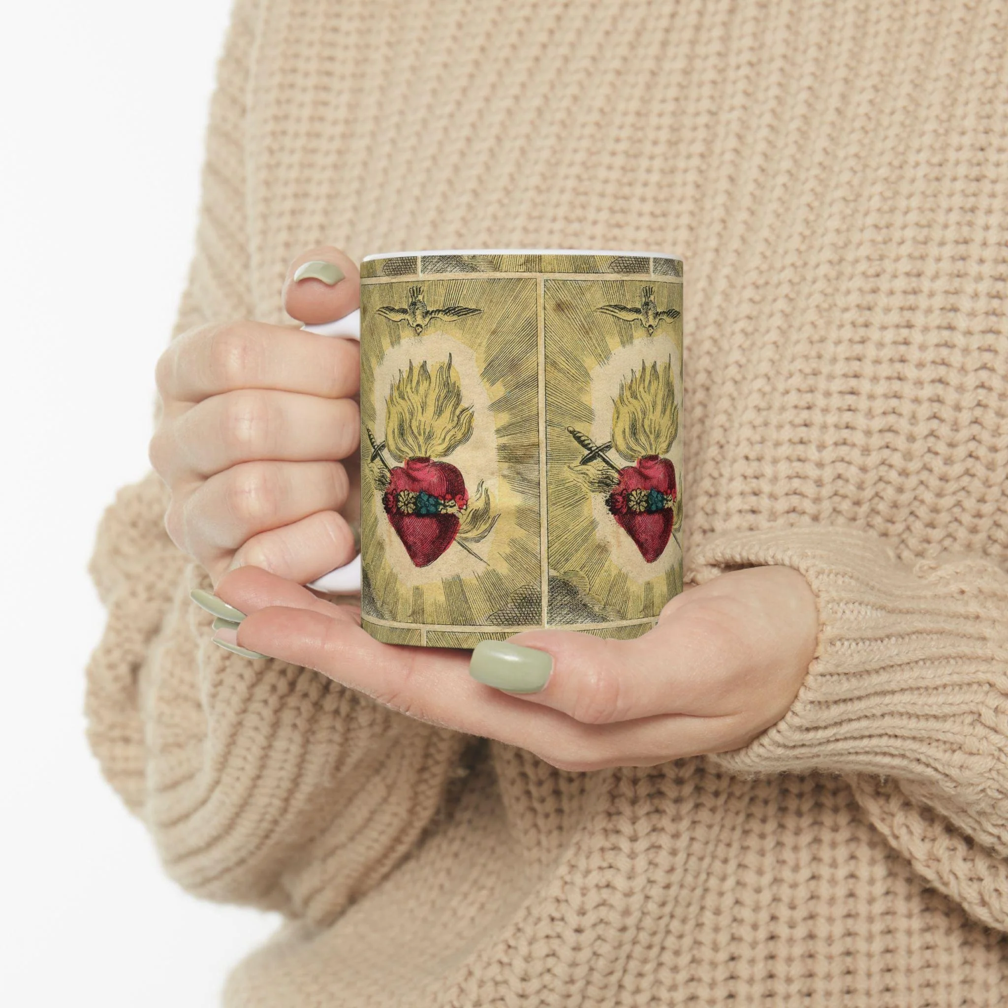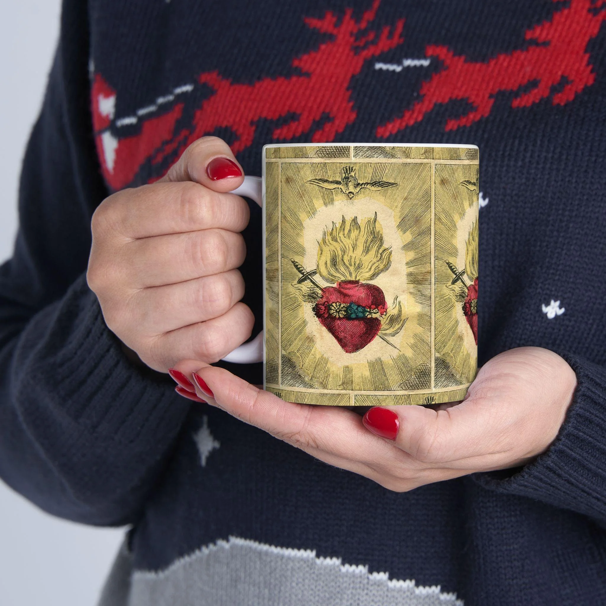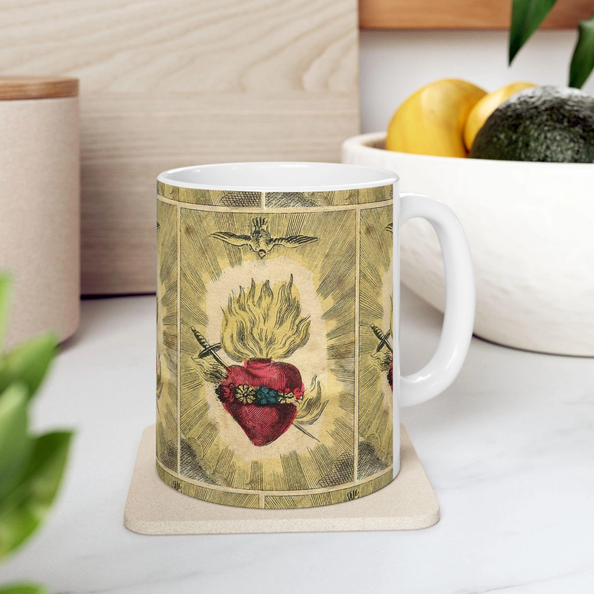 Vintage Sacred Heart of Jesus Coffee Mug | Catholic Devotional Symbol | 11oz Ceramic