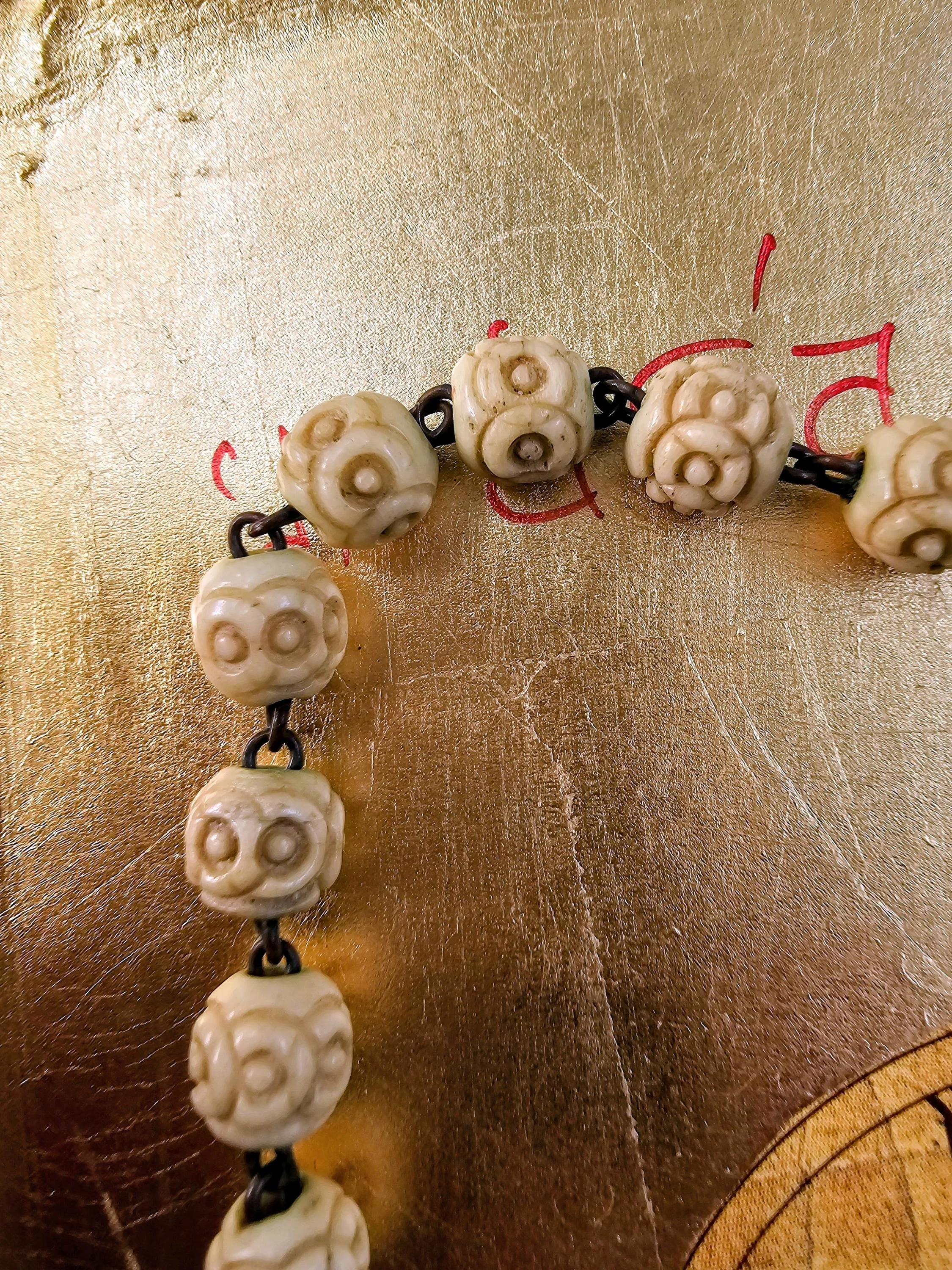 The techniques used here—carving bone beads in floral relief, forming links by hand, and riveting multi-piece crucifixes—are no longer done at scale. The workshops that made devotional objects like this mostly disappeared after the World Wars. Modern pieces are cast, pressed, and mass-finished. This rosary carries the fingerprint of a bygone craft tradition—there truly isn’t another one exactly like it in the world.