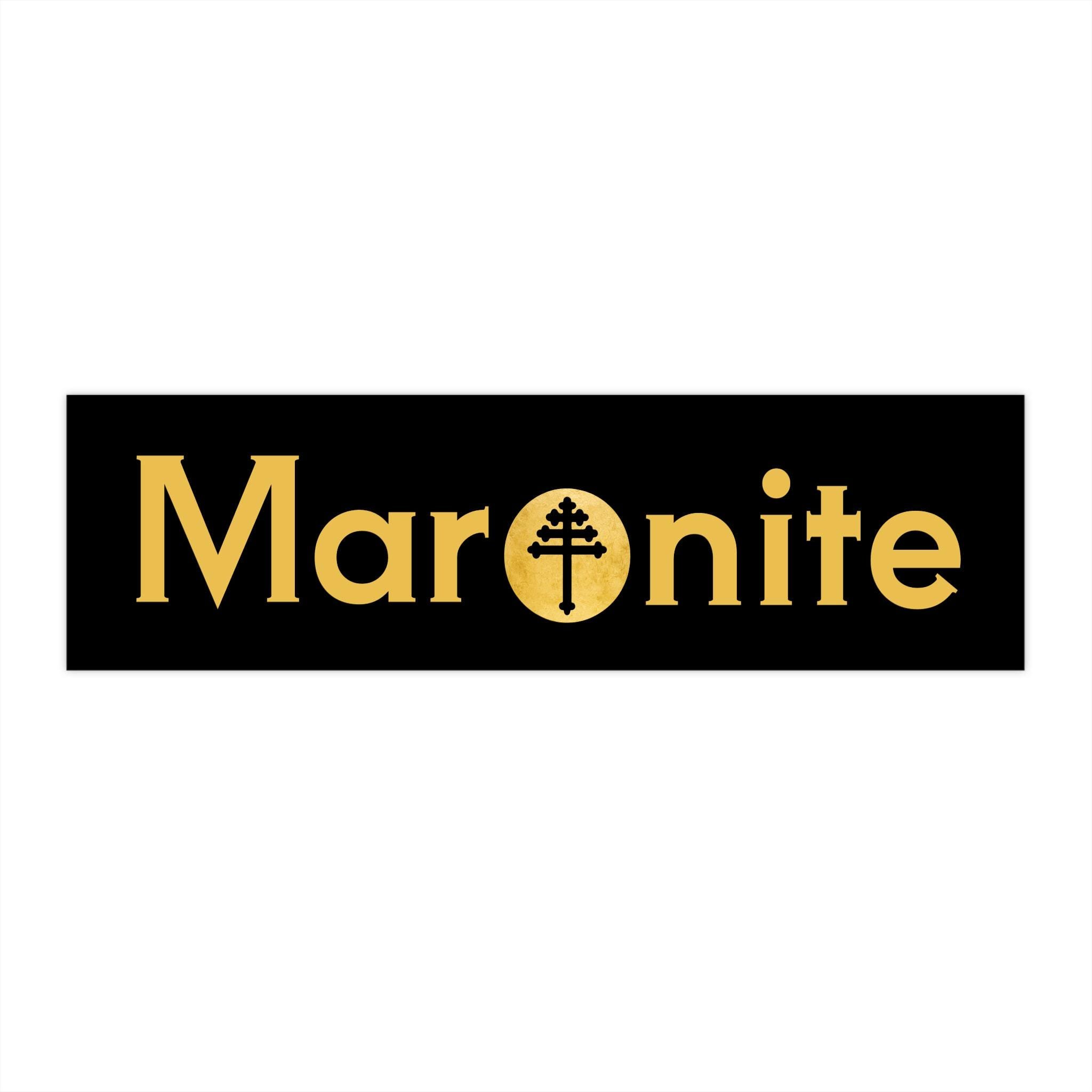 A sleek, matte bumper sticker that quietly celebrates Maronite heritage with a refined gold-on-black palette. The design centers on a stylized Maronite cross integrated into the wordmark, giving a subtle, dignified nod to faith and identity. Weatherproof and durable, this sticker stays vivid through sun, rain, and road grime while keeping a low-glare finish that looks polished on cars, water bottles, laptops, or journals. It slips on easily, holds fast, and removes cleanly when it’s time for a change — a small, meaningful way to carry tradition into everyday moments.