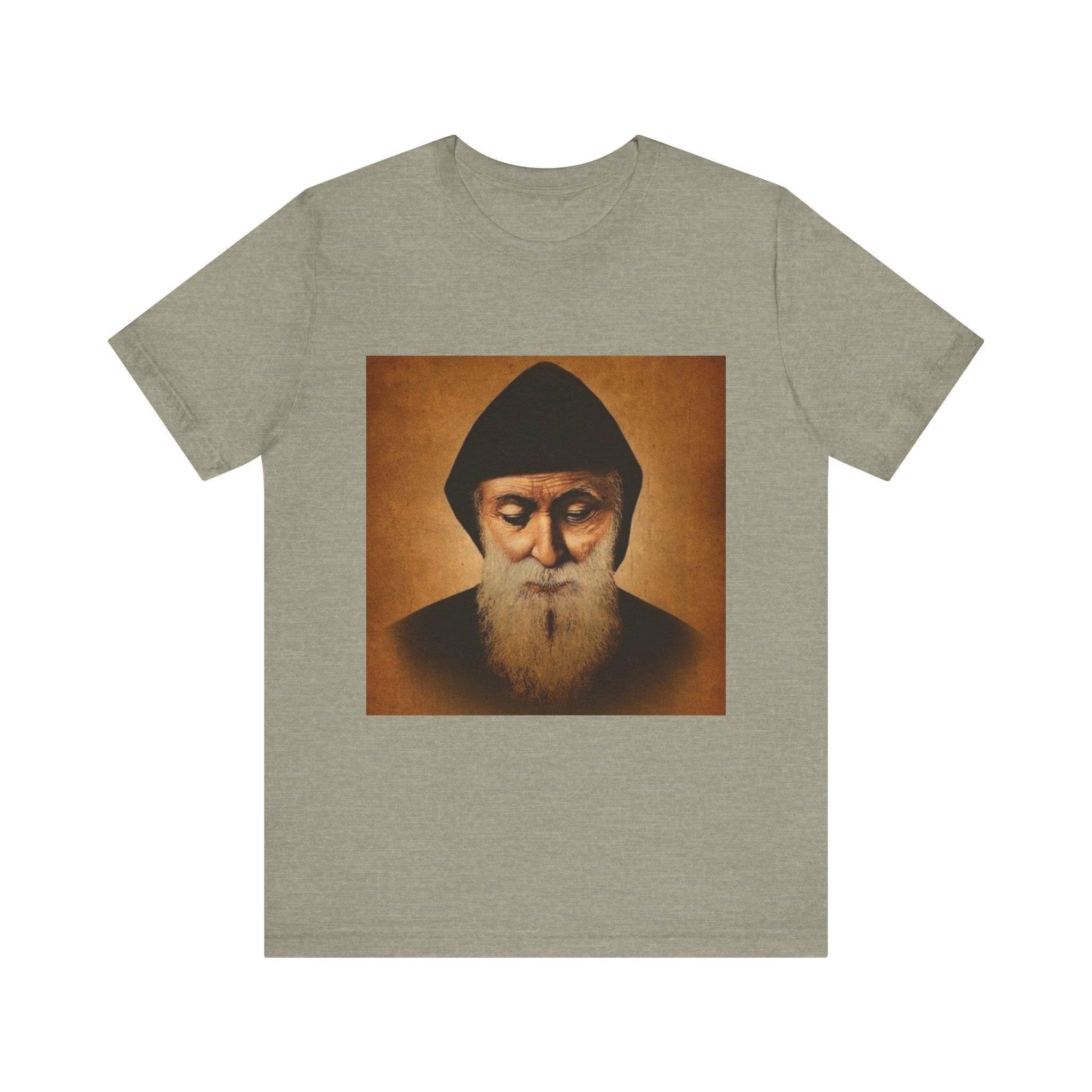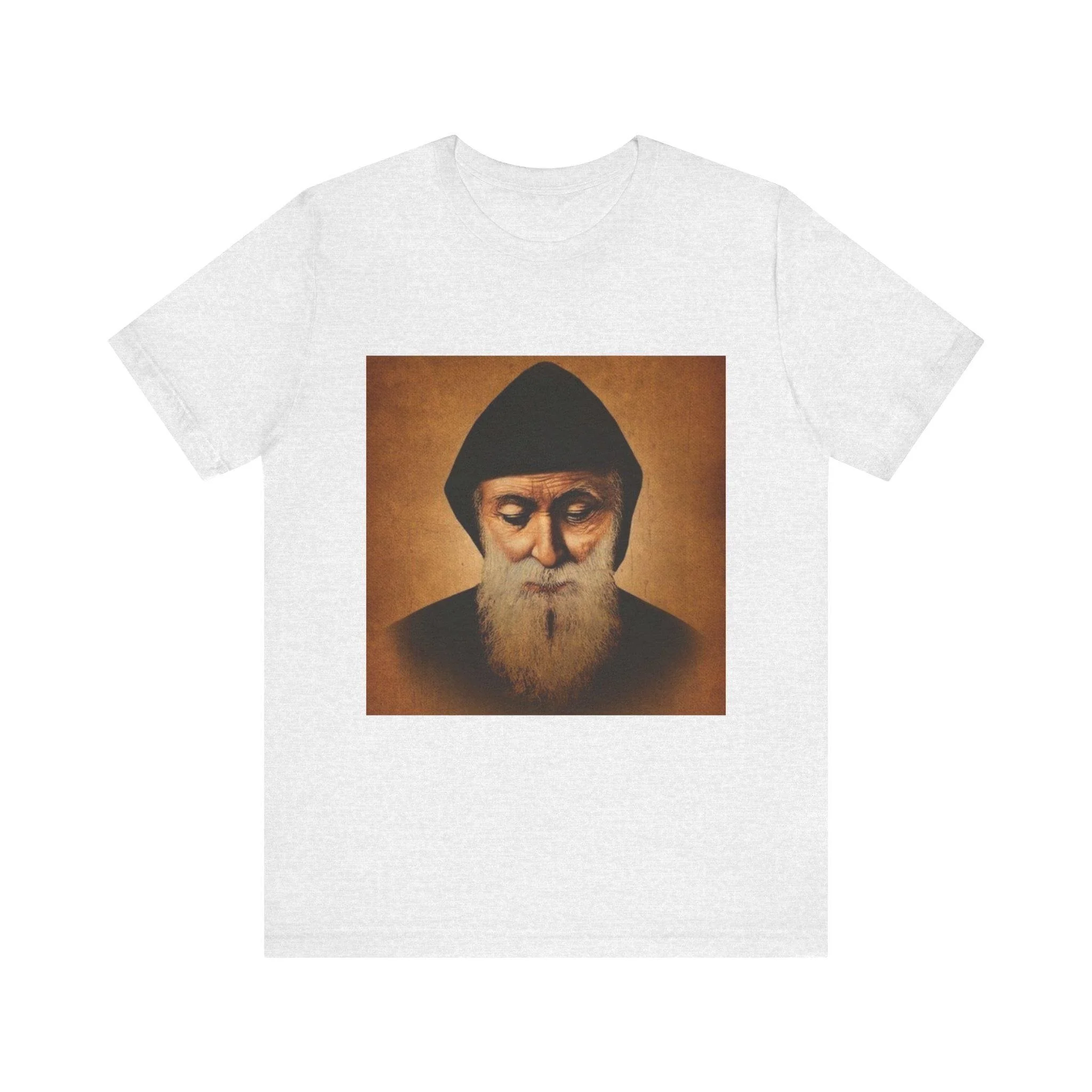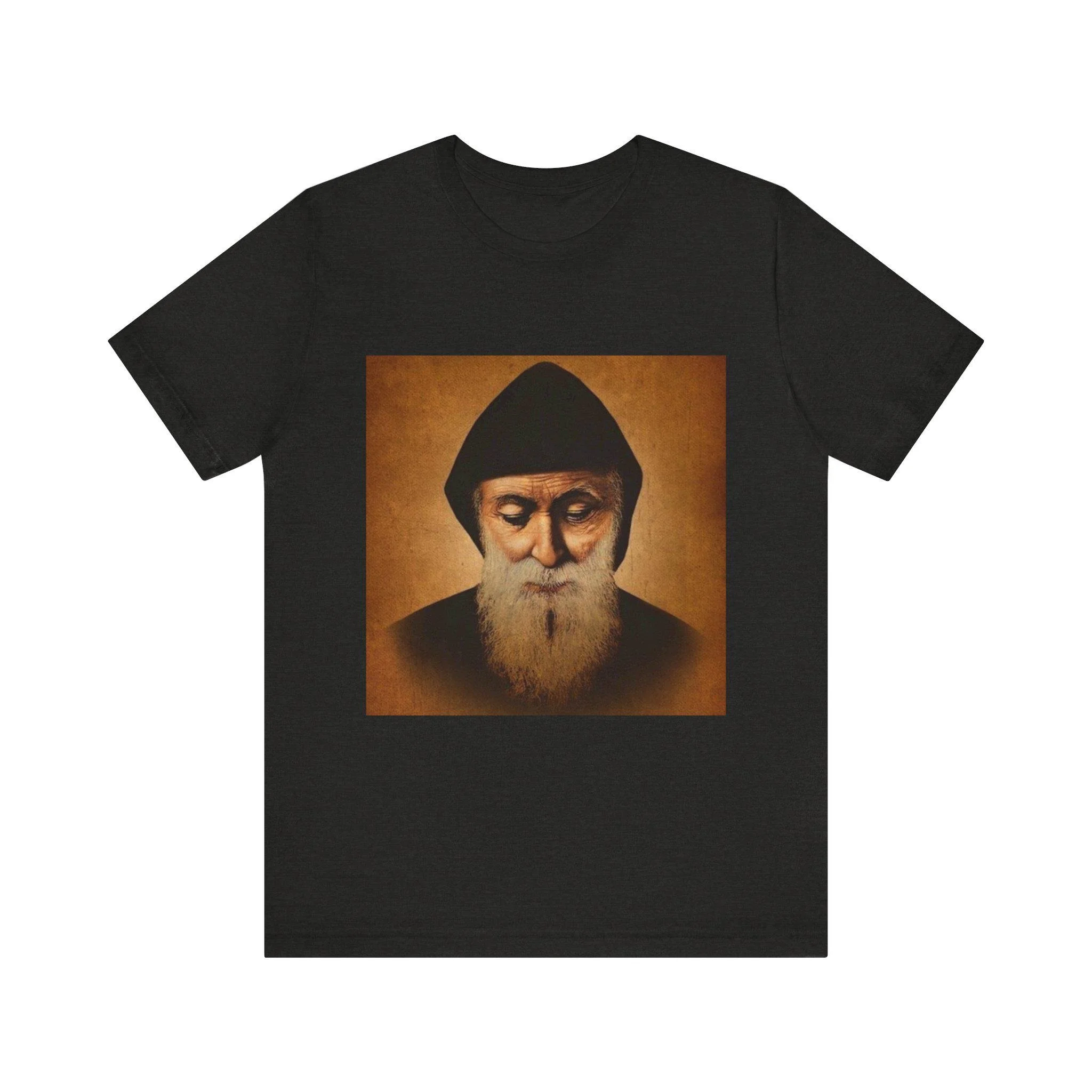 Celebrate the life of Saint Sharbel Makhlouf with this vintage-style icon t-shirt. Perfect for Maronite Catholics, Eastern Christians, or anyone inspired by the lives of saints. This soft and breathable unisex tee is ideal for prayer groups, retreats, and daily inspiration. A great spiritual gift for Catholic friends, Lebanese Christians, or those devoted to saintly figures.